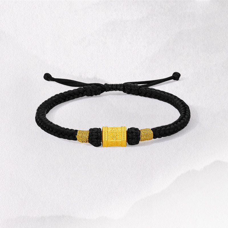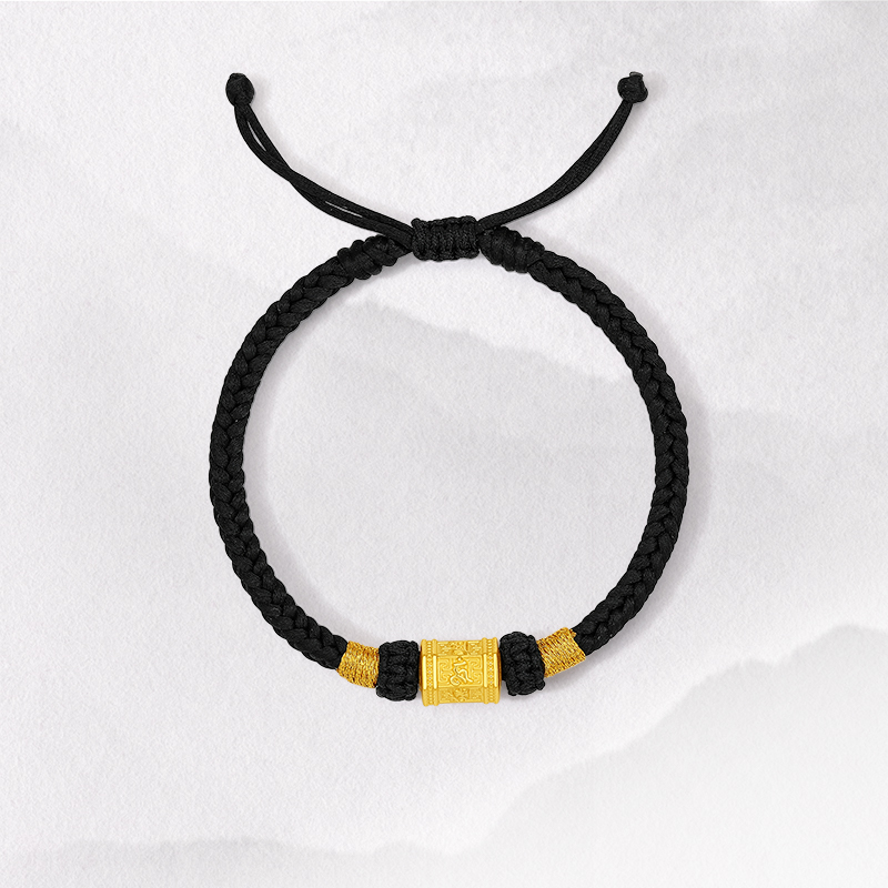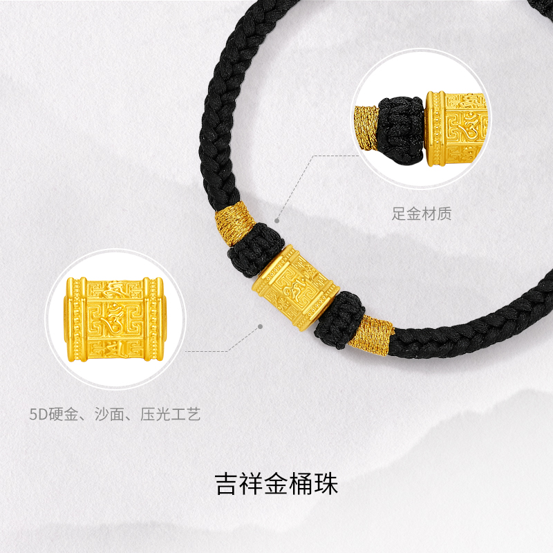 周六福5d硬金定价六字真言黄金桶珠手绳男款黄金手链男送圣诞礼物