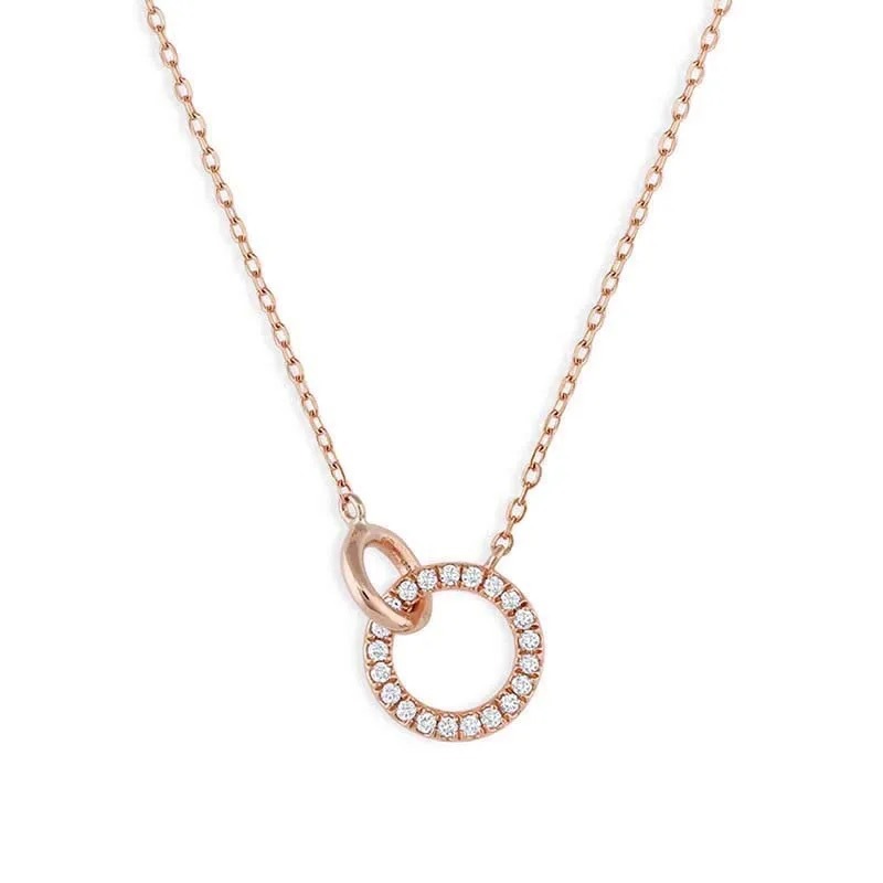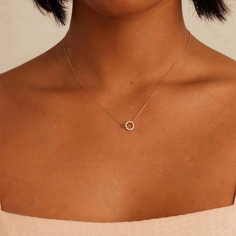 风圆饼满钻锆石银镶钻双环圆形项链锁骨链欧美跨境S925纯项饰