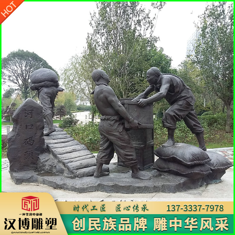 玻璃钢仿铜人物雕塑铜雕河口码头搬运工雕塑户外广场铸铜雕塑定制