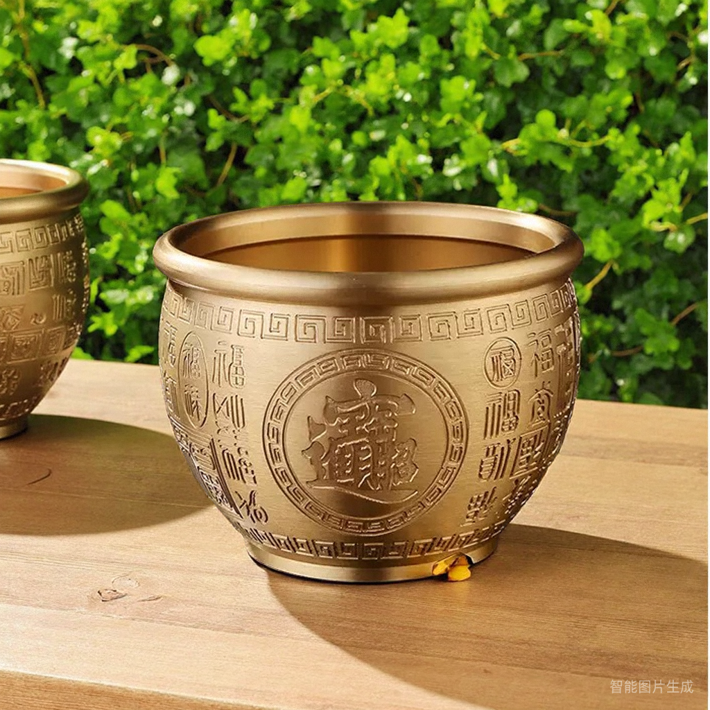 黄铜米缸铜缸铜制百福缸冰箱上聚宝盆摆件存钱罐财缸福字缸装饰品