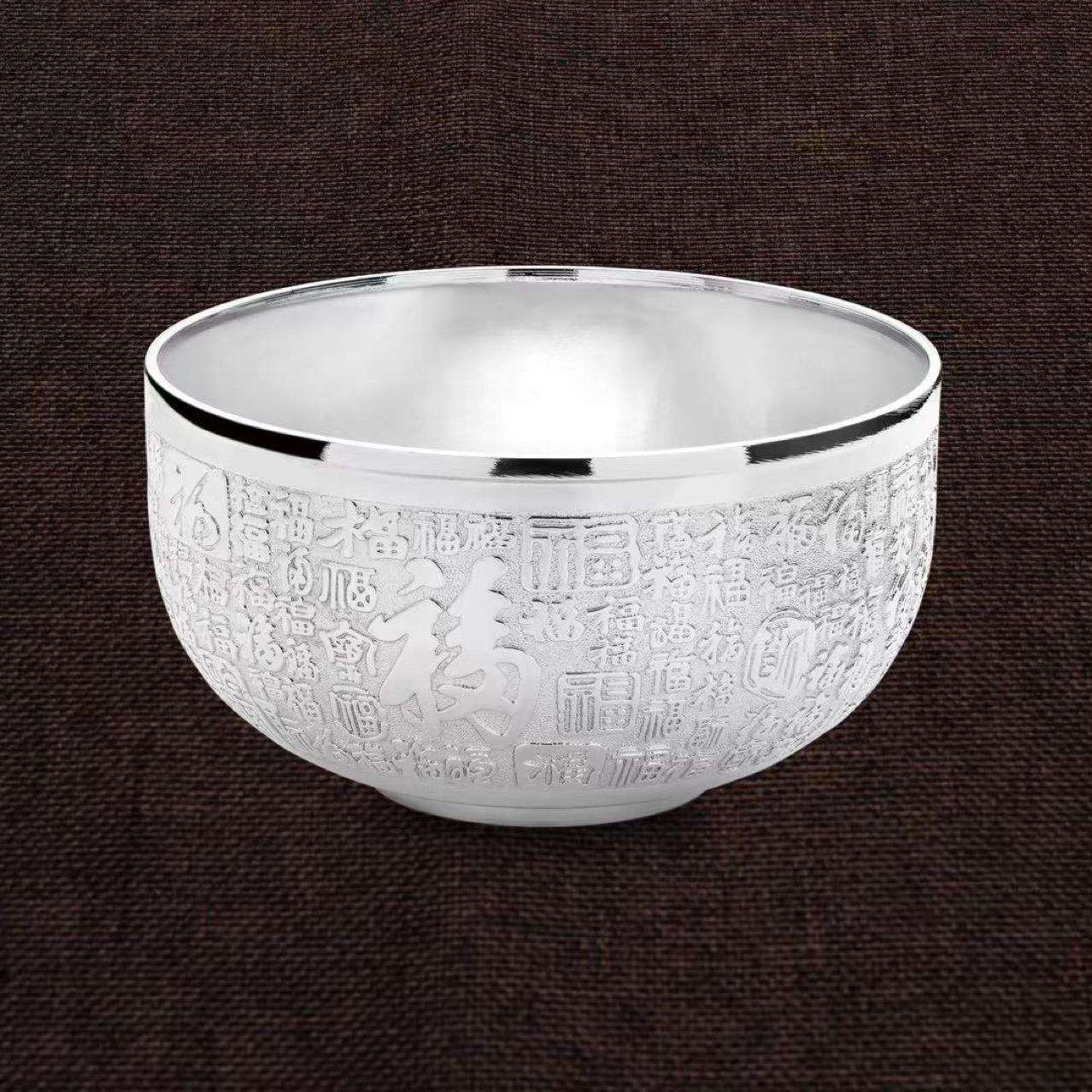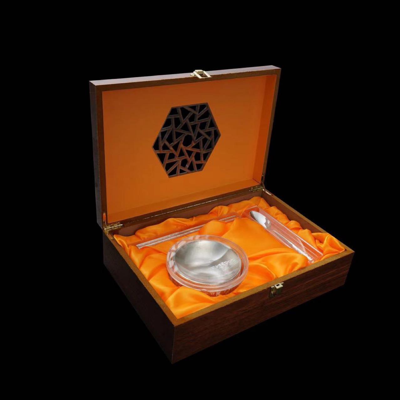 百福银碗三件套筷勺镀银皮盒木盒套装赠礼佳品礼盒高档会销直播