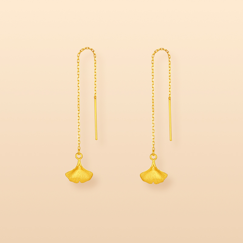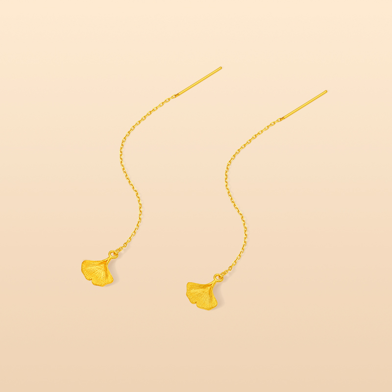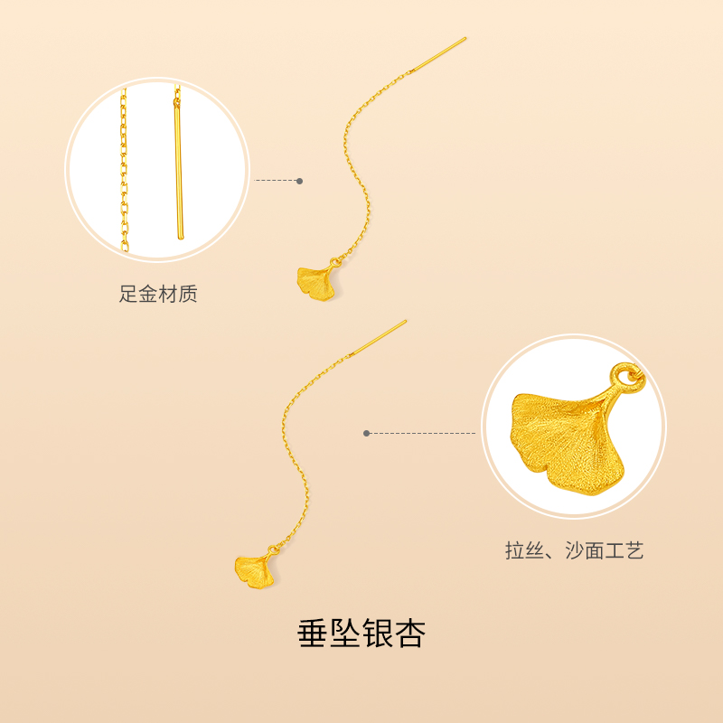 周六福黄金耳饰计价足金银杏叶温柔有杏秋日物语系列圣诞礼物