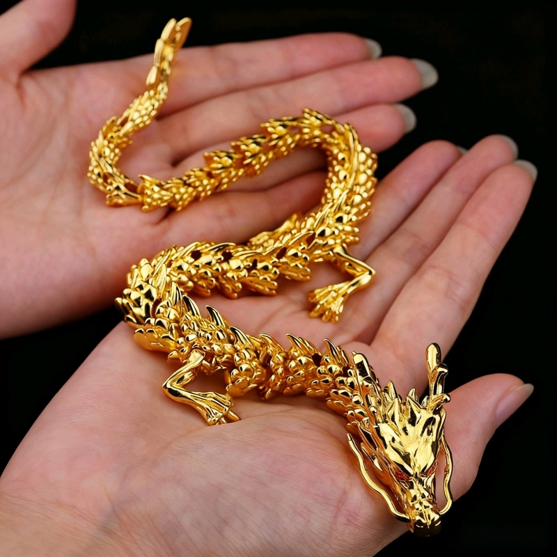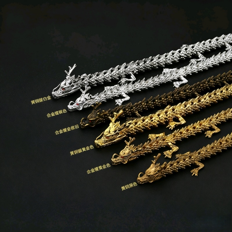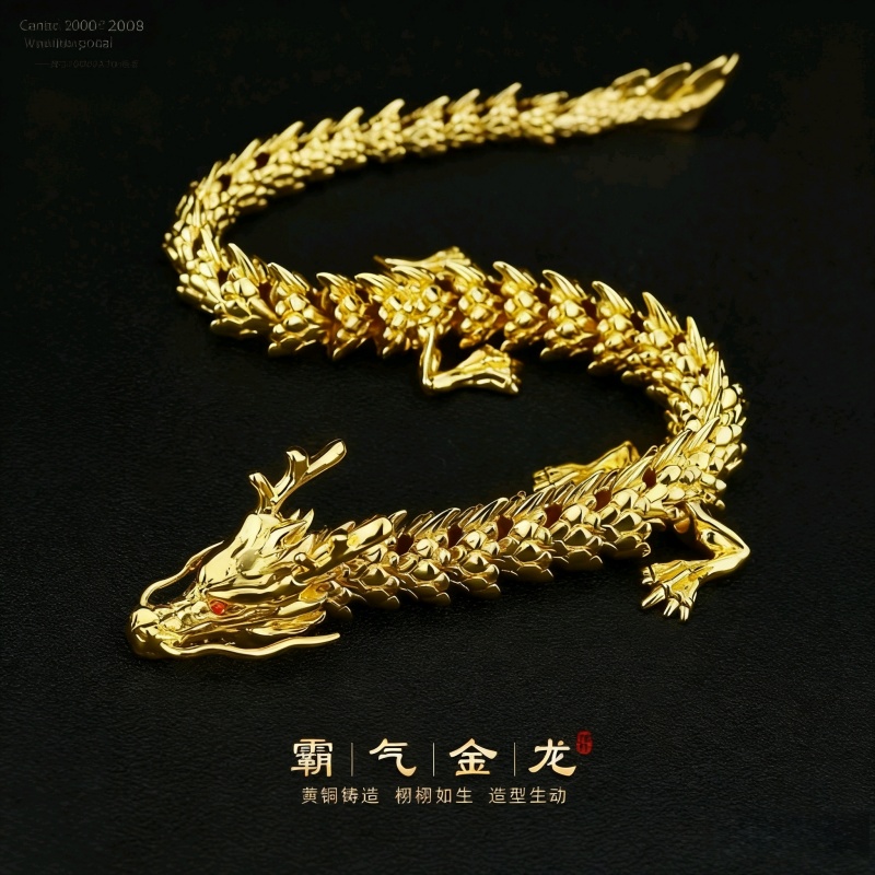 黄铜五爪金龙关节可活动摆件车载桌面装饰品镀金生肖龙手把件玩具