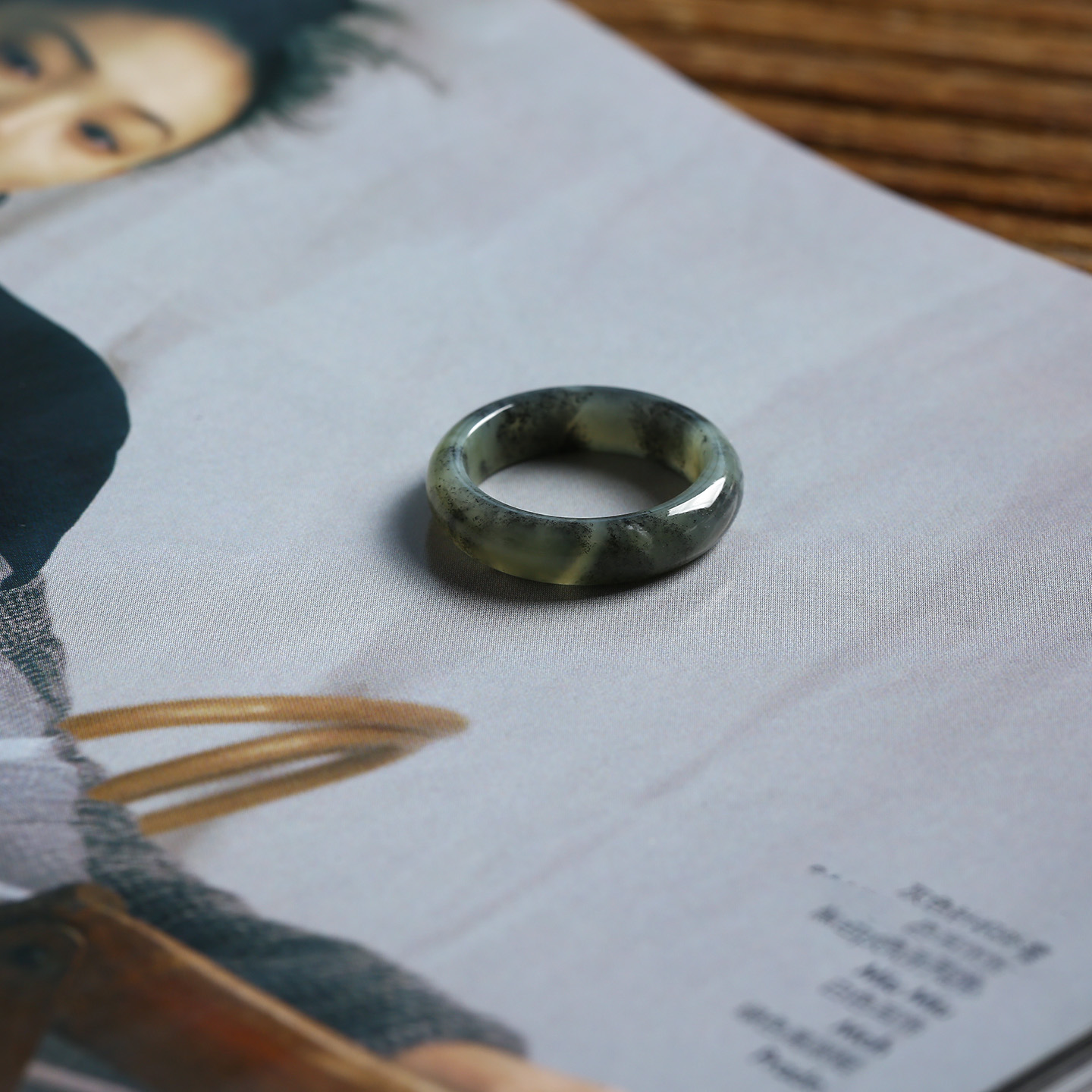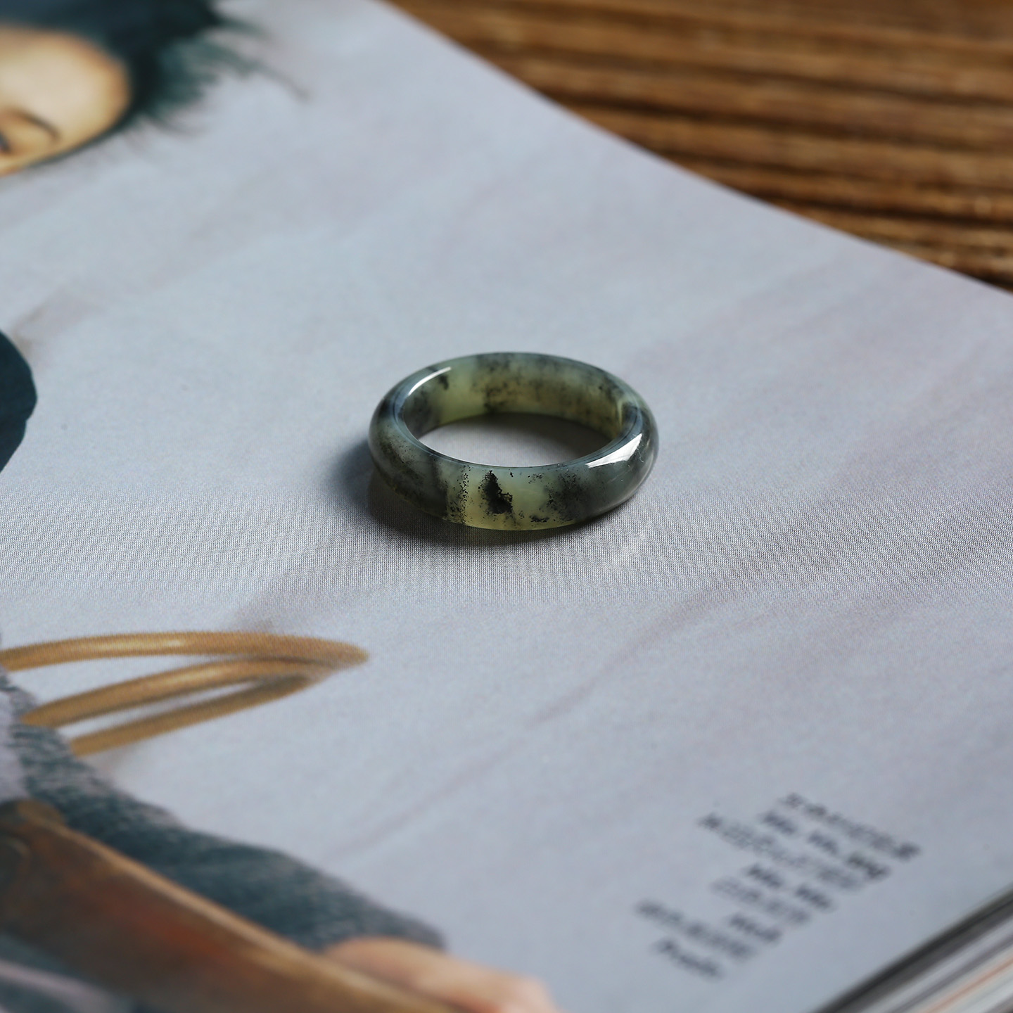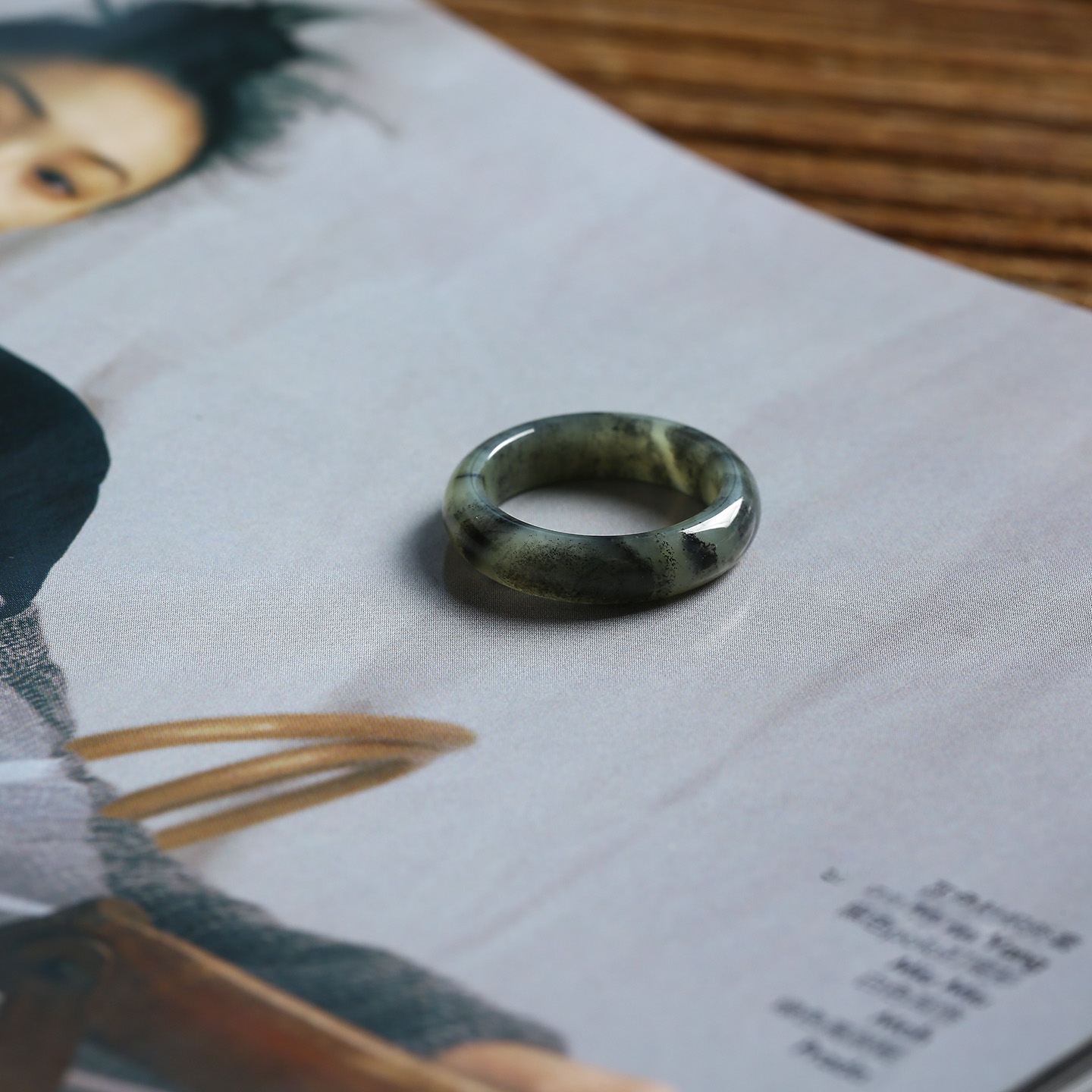 13号戒指 新疆和田玉青花泥鳅背圆弧素圈指环 6705
