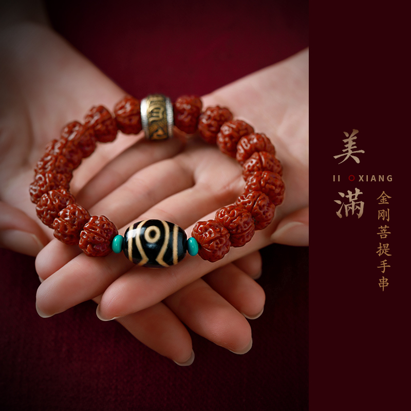 金刚菩提手串五瓣满肉七夕送男友礼物文玩三眼天珠手链佛珠转运珠