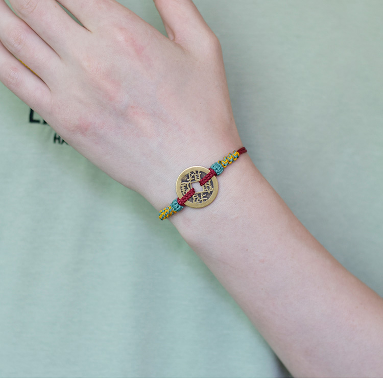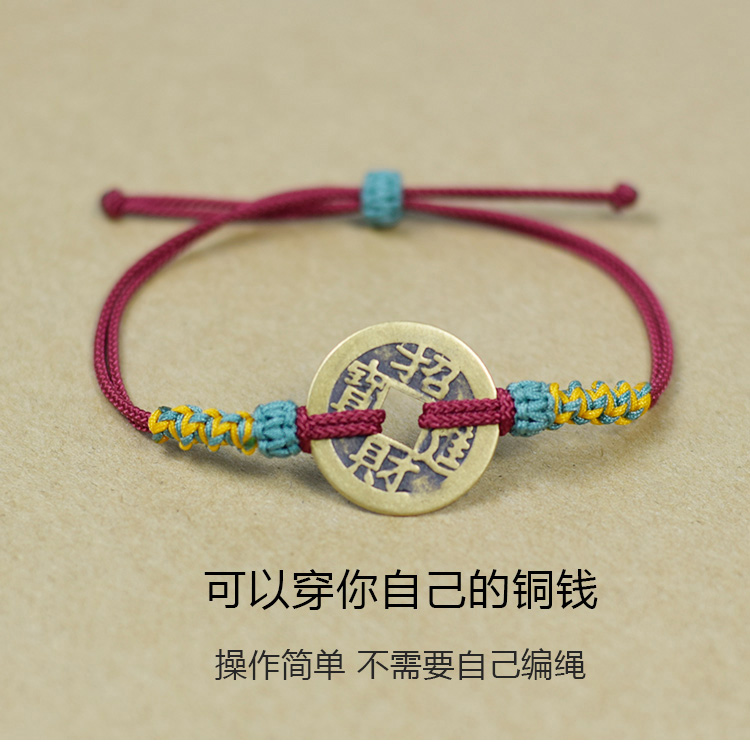 原创敦煌风编织可穿铜钱平安扣半成品DIY酒红色本命年红绳男女手