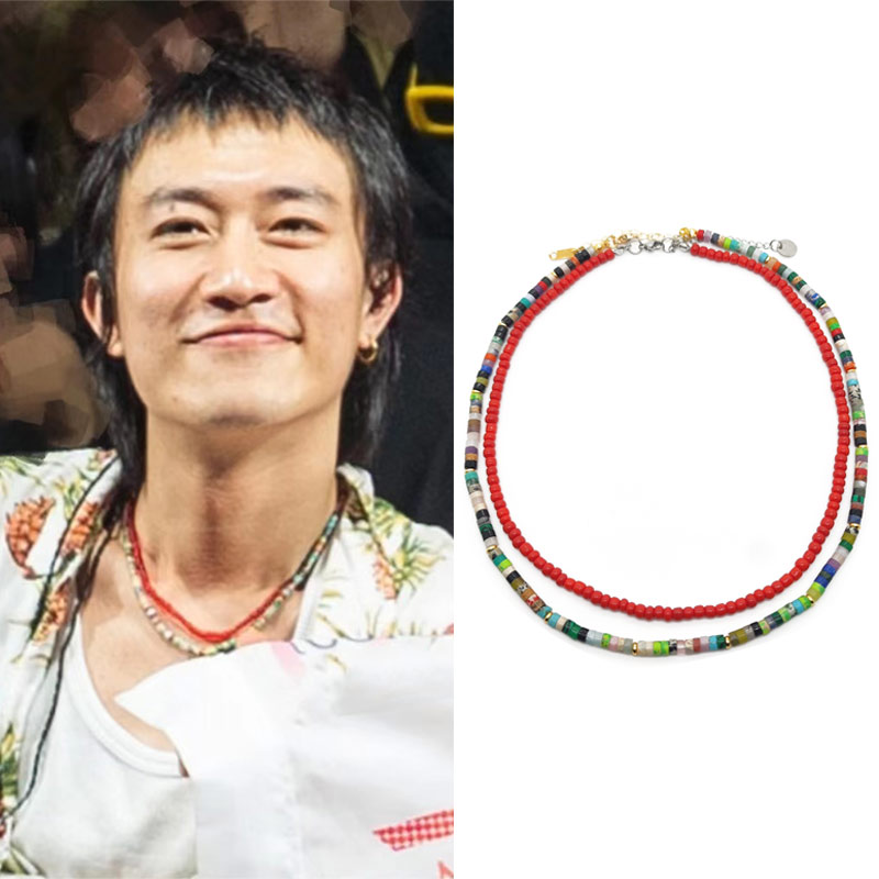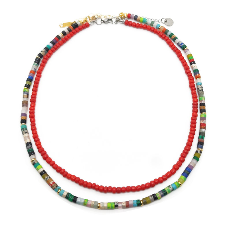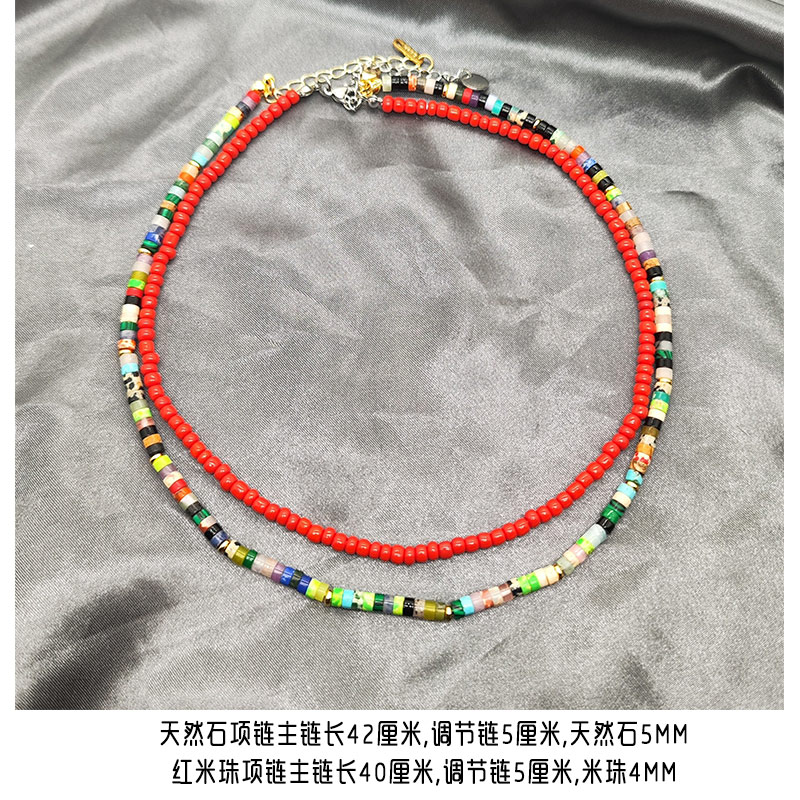 刘西蒙回春丹主唱同款红色珠彩天然石项链套装圈潮个性乐队的夏天