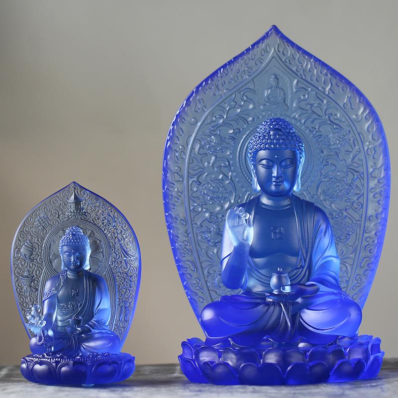 琉璃背板药师佛佛像莲花底座摆件居家客厅桌面摆放家用供佛佛具