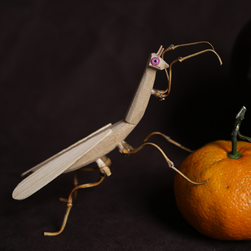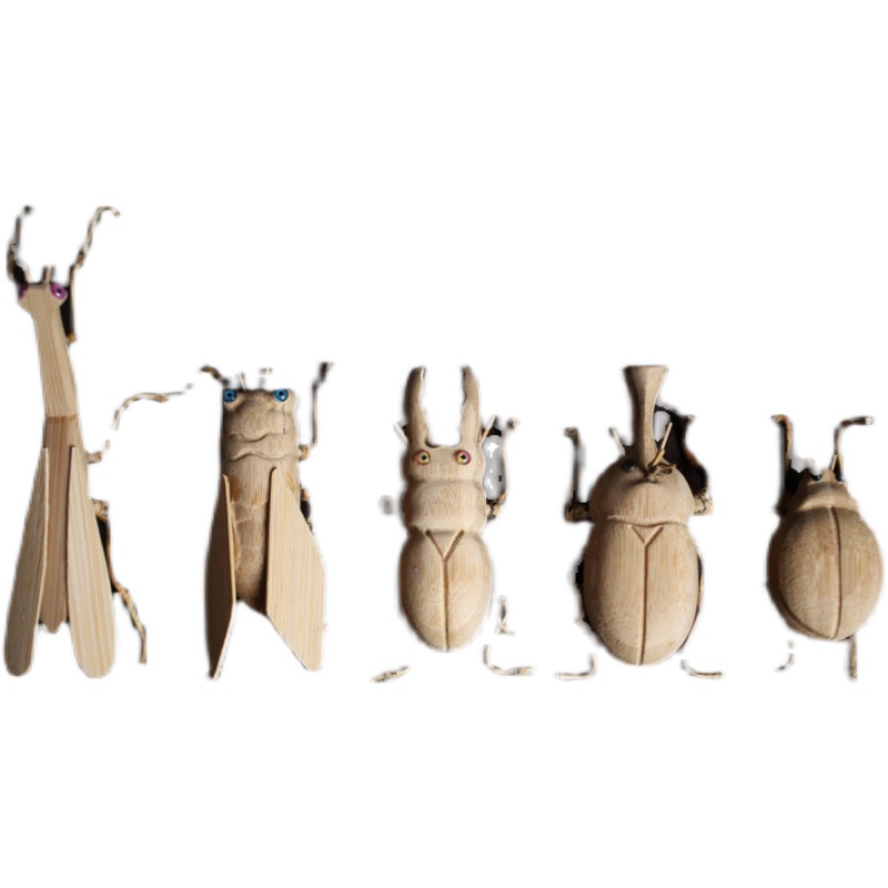 手工制作品竹制昆虫小动物复古工艺品螳螂甲壳虫摆件桌面创意装饰