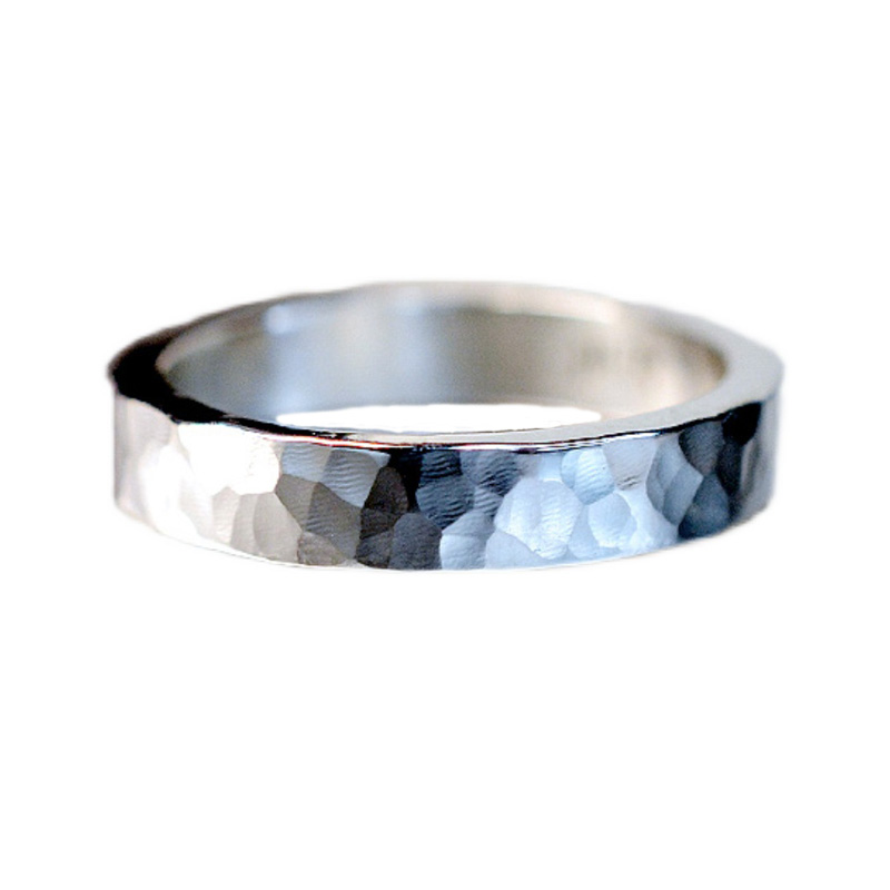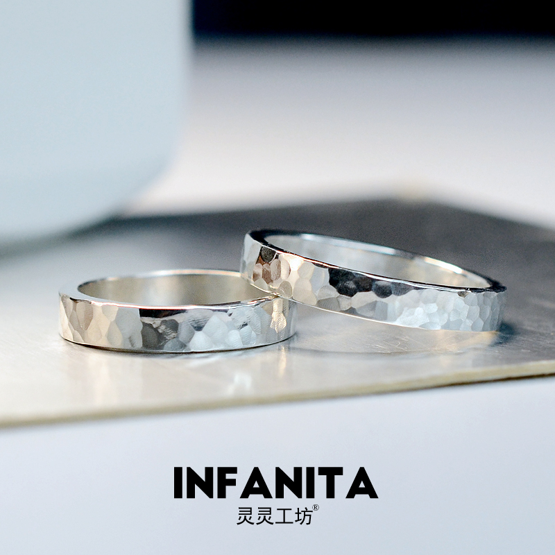 纯银手工锤纹戒指情侣99足银男女小众个性食指对戒环素圈时尚极简