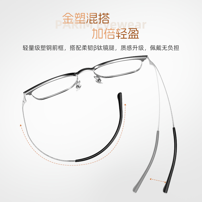 派丽蒙半框眼镜男款可配度数镜片防蓝光近视斯文眉线框眼镜85141