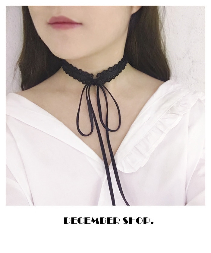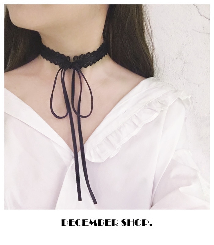 韩国气质镂空蕾丝细丝绒系带蝴蝶结绑带长款项圈choker女脖带颈带