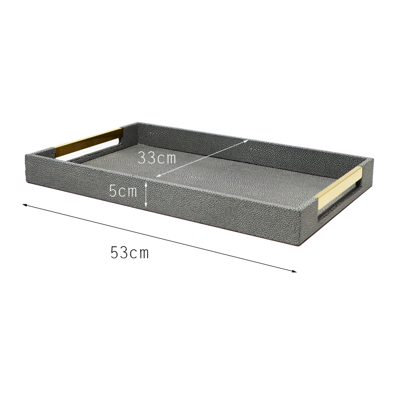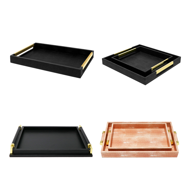 新中式木质皮质托盘样板房间收纳盘酒店会所软装饰品摆件客厅茶几