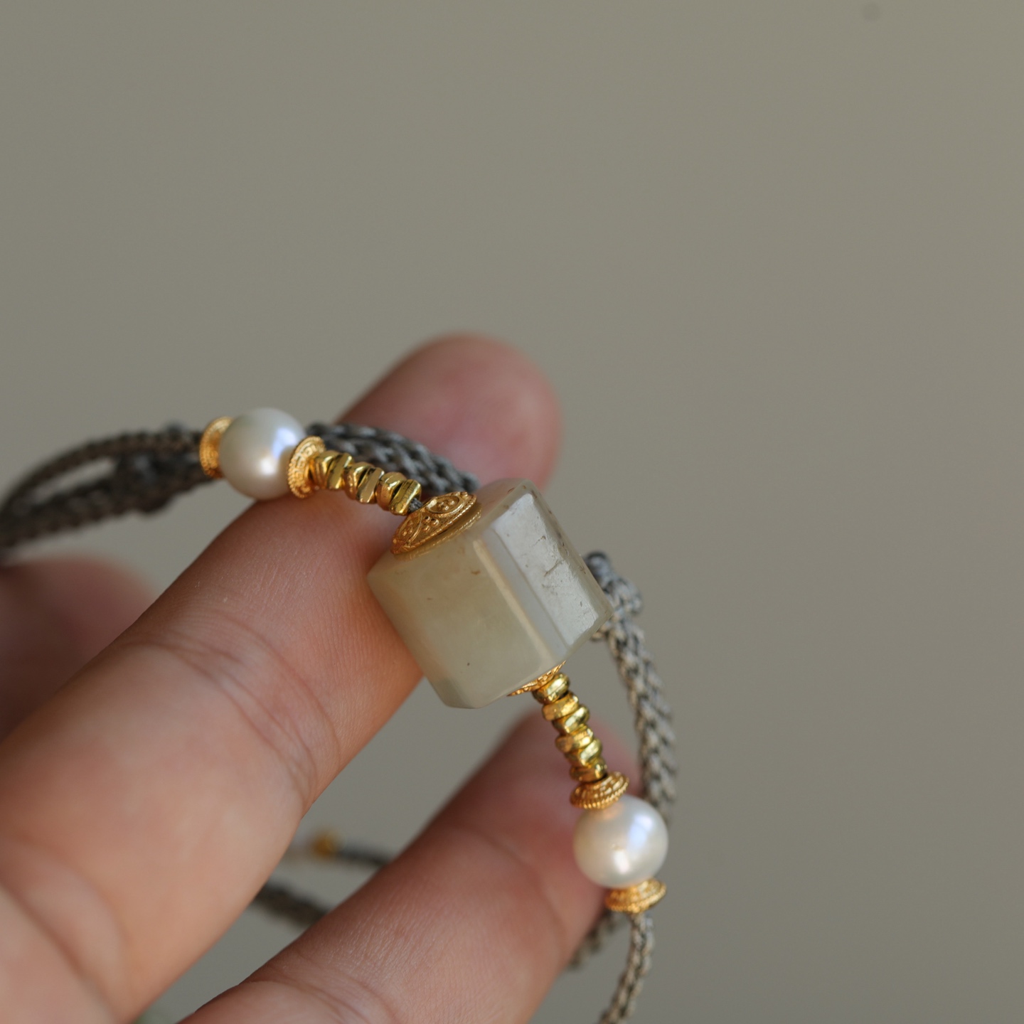 小精品天然和田玉桶珠锁骨链搭配纯手工绳长短可调节搭配南红花瓶