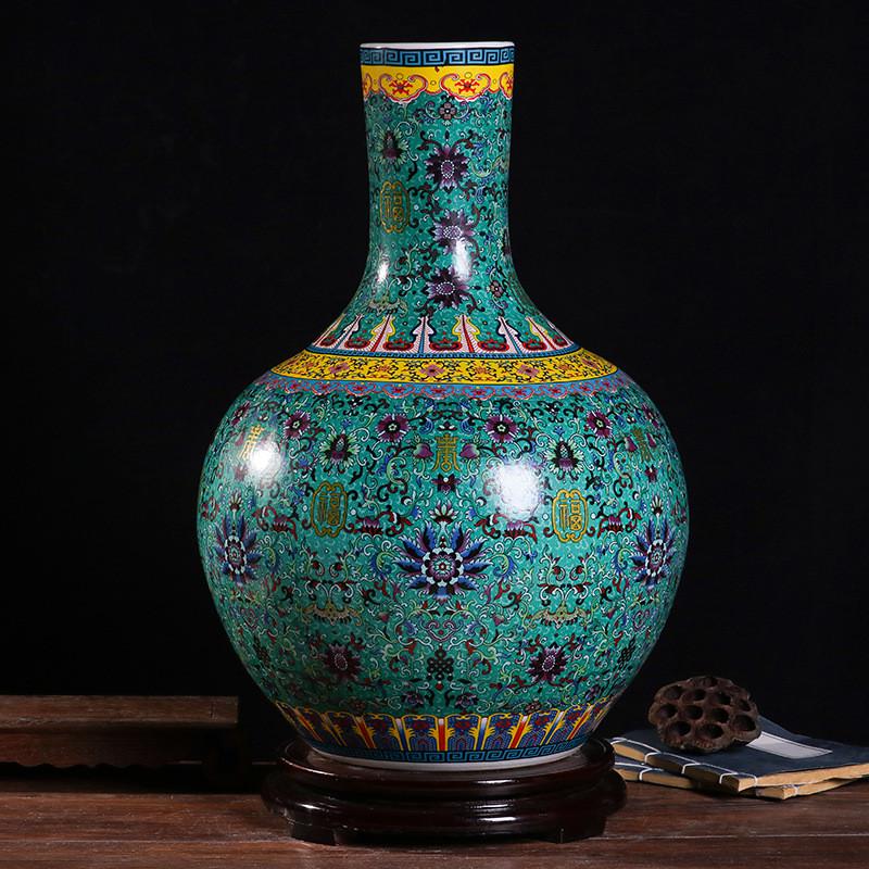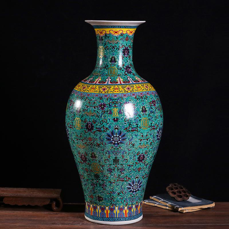 花瓶万寿无疆落地大花瓶珐琅陶瓷器装饰景德镇客厅家居工艺品摆件