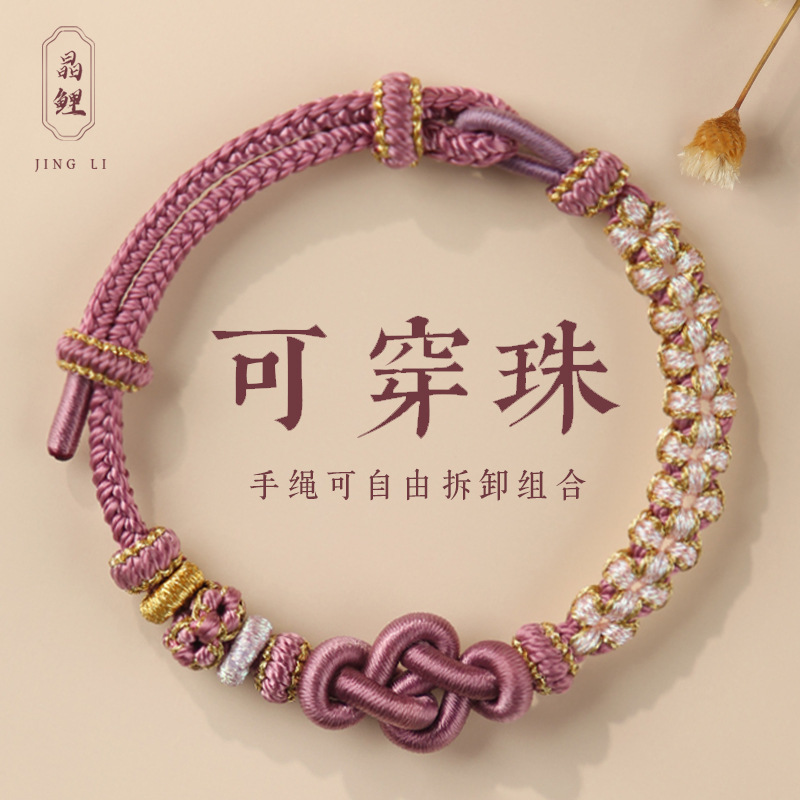 如意结桃花结手绳半成品可穿黄金转运珠手工编织手链情侣闺蜜礼物