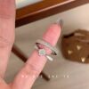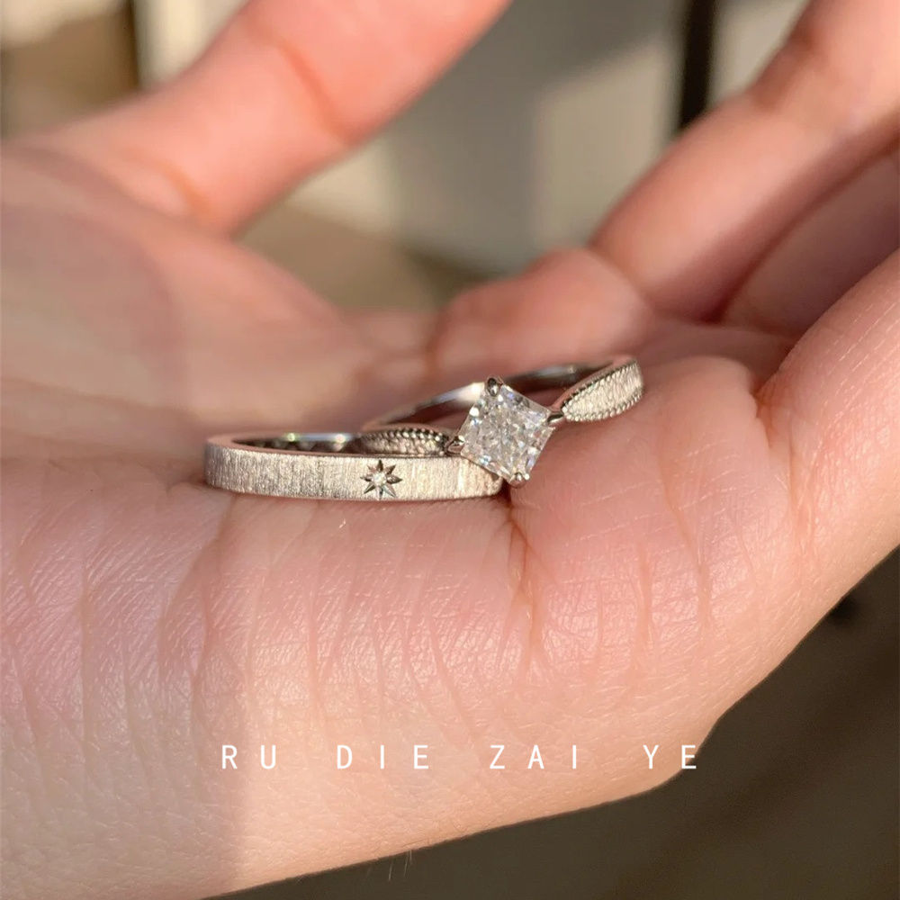 如蝶在野 vintage拉丝银色方糖锆石水星记戒指高级轻奢小众开口戒