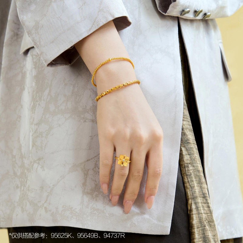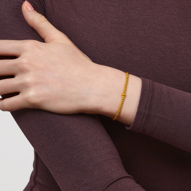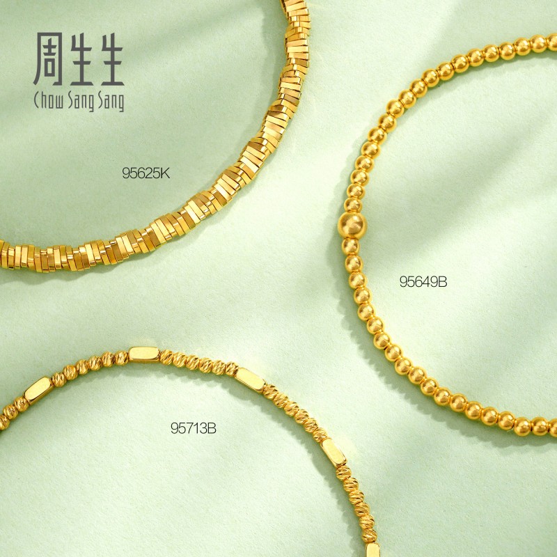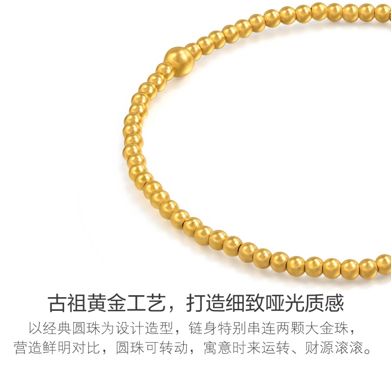 周生生官方正品东方古祖足金珠珠手串小金珠古法黄金手链95649B