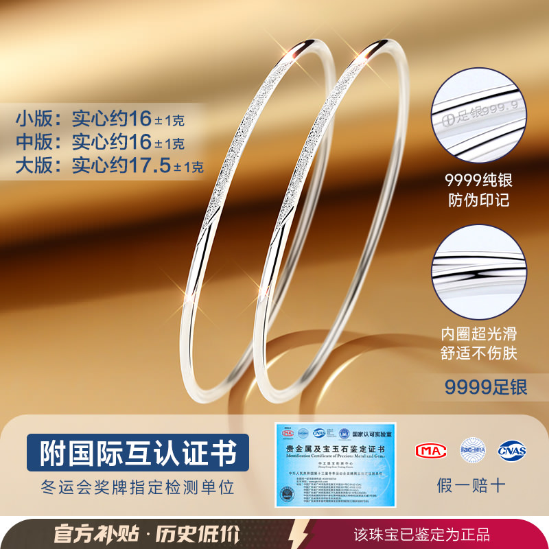 三生三世银手镯女9999纯银999纯银实心银镯子双环素圈手环年轻款