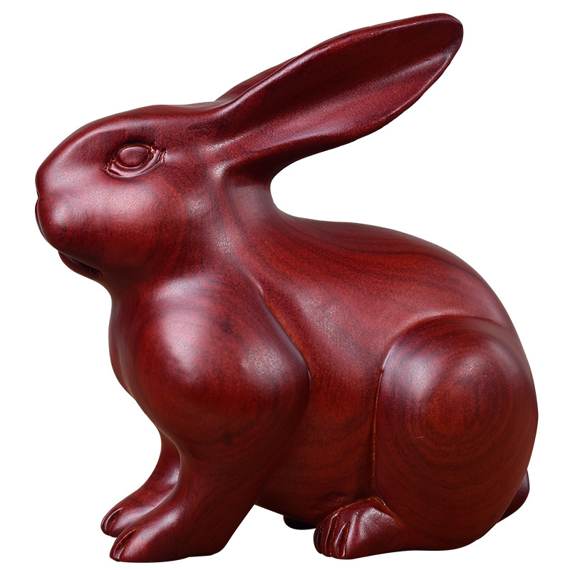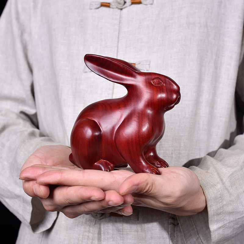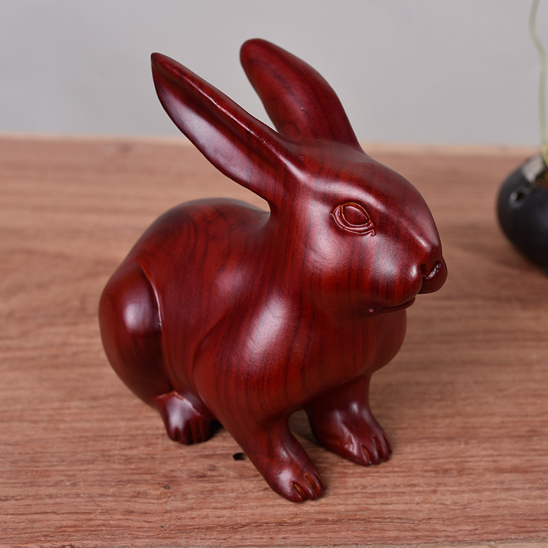 适用实木雕刻兔子摆件红色兔小可爱十二生肖兔家居客厅装饰红木工
