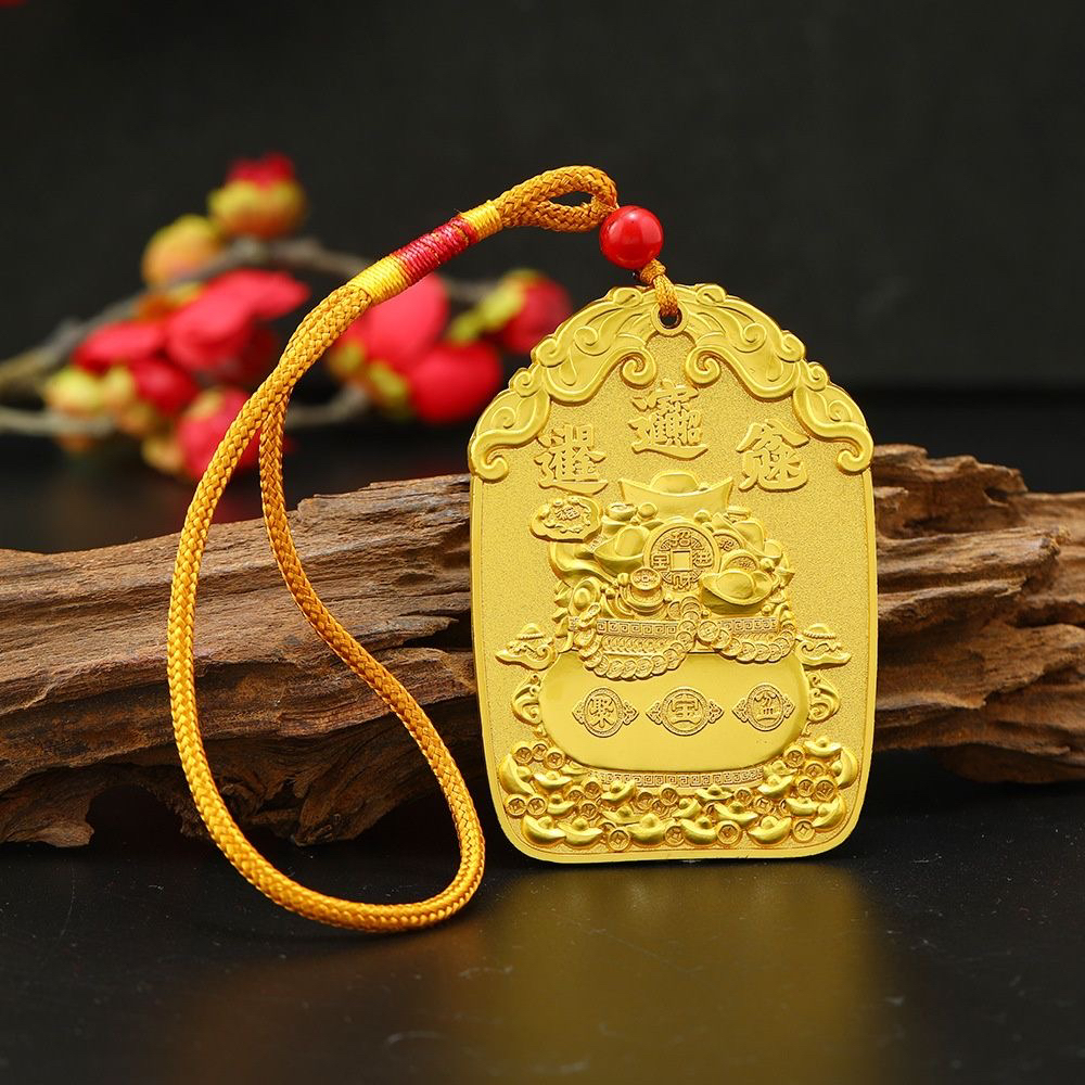 新款三面大黑天财神令牌挂件聚宝盆密宗财神招财家居饰品