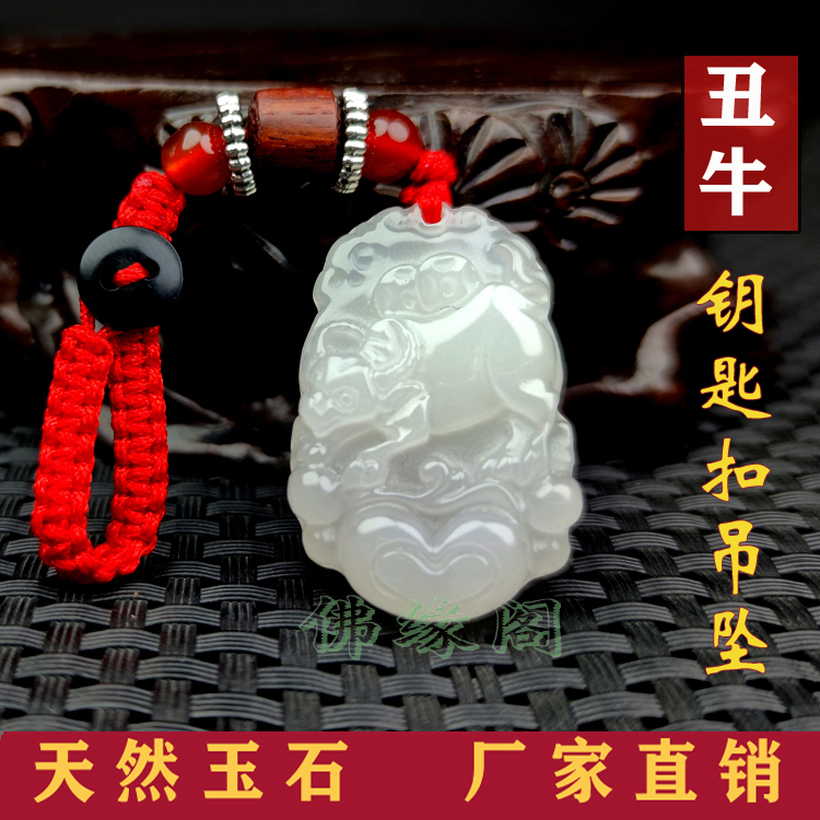 白玉吊坠12十二生肖属小老虎钥匙扣挂件男女款本命年饰品玉石佩