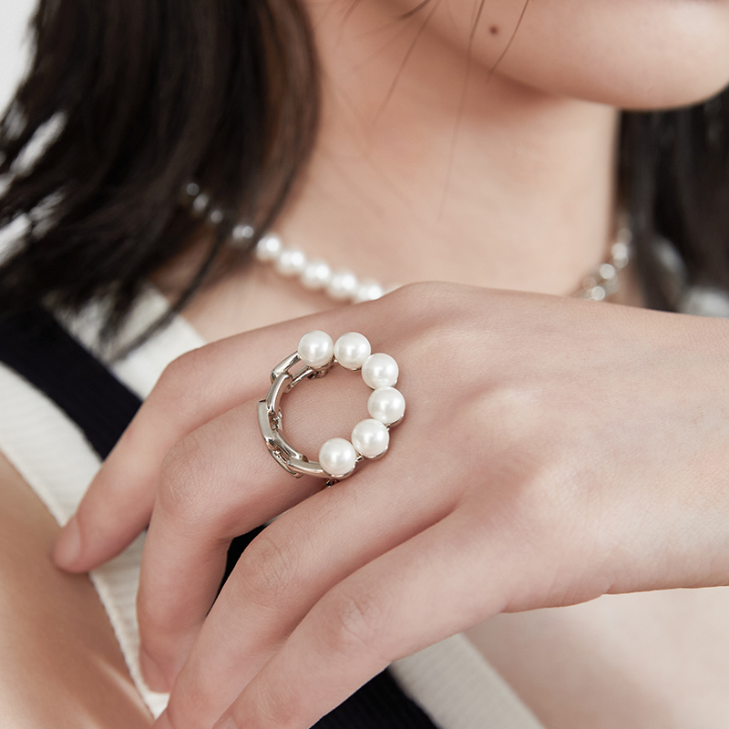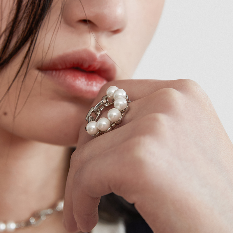 THEYKNOW<TOUCH纯银系列>珍珠戒指锁扣戒指ins个性简约礼物