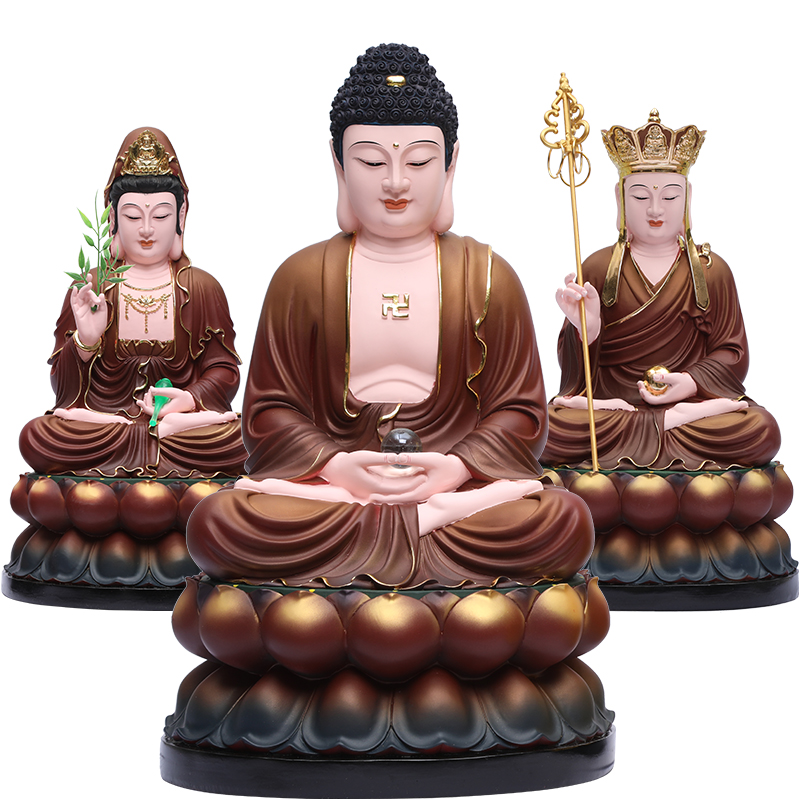 厂家直销古彩沙婆三圣树脂玻璃钢西方三圣佛像观音佛像供奉观音