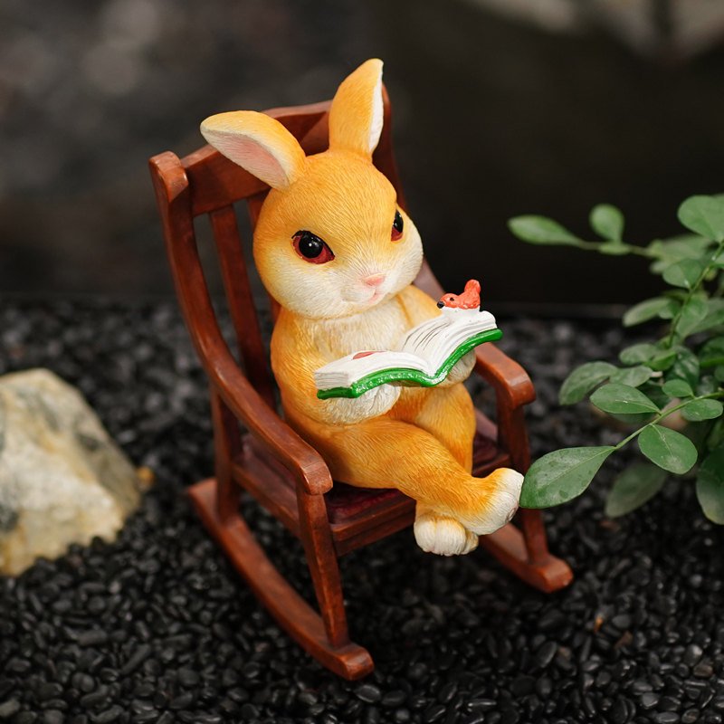 创意可爱小兔子看书办公室桌面摇椅摆件阳台花园艺微景观布景送礼