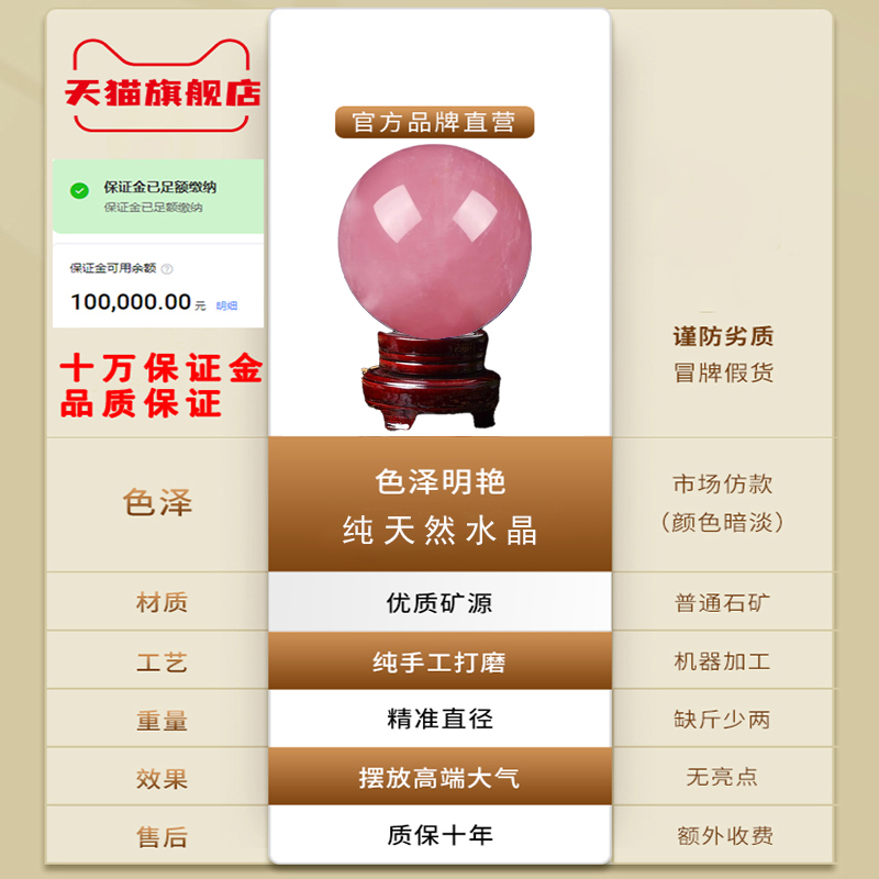 天然粉色水晶球摆件粉晶招桃花卧室办公桌面家居装饰摆件高档礼品