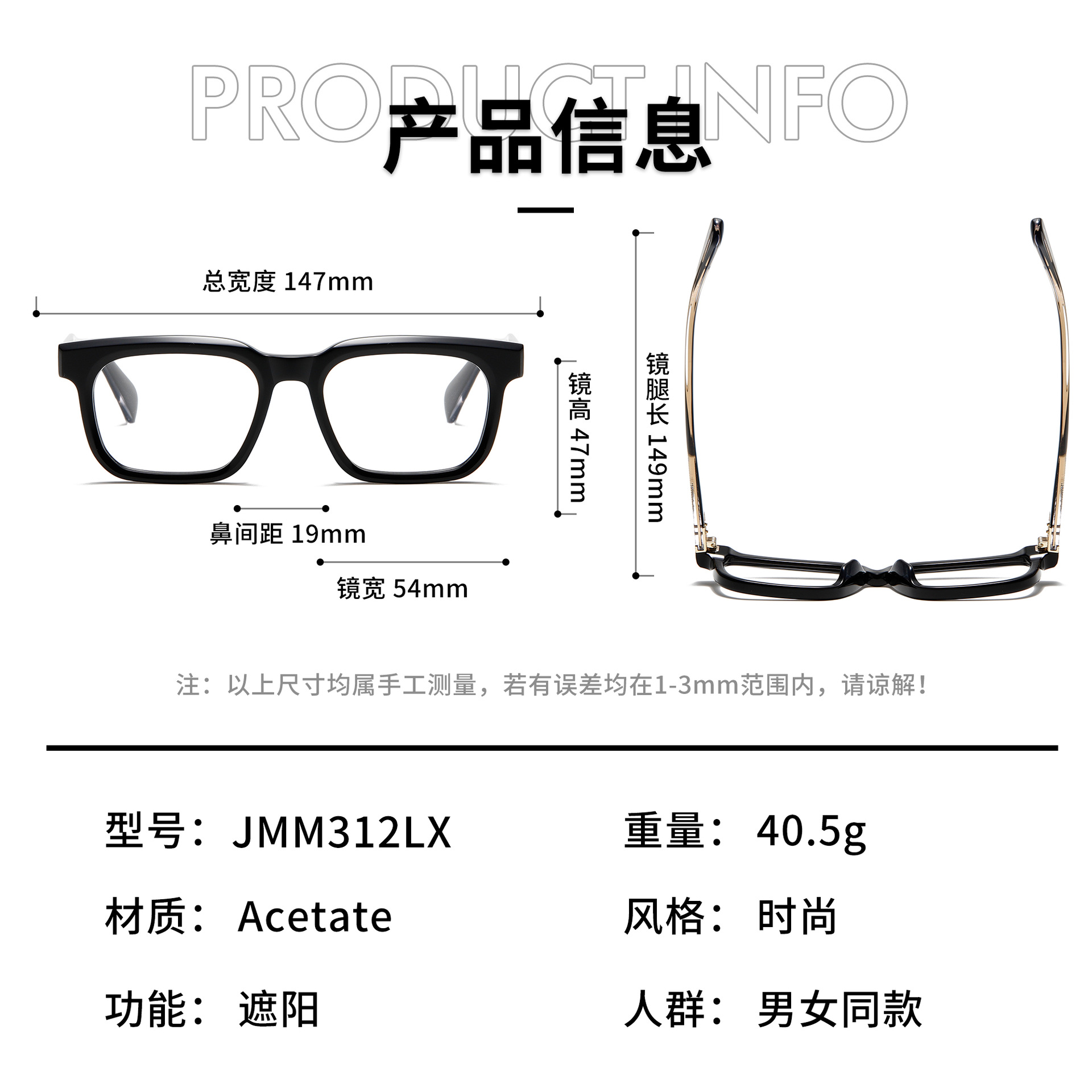 匠心手造JACQUES新款同款JMM312lX8.0厚料玳瑁板材方框太阳镜厚料