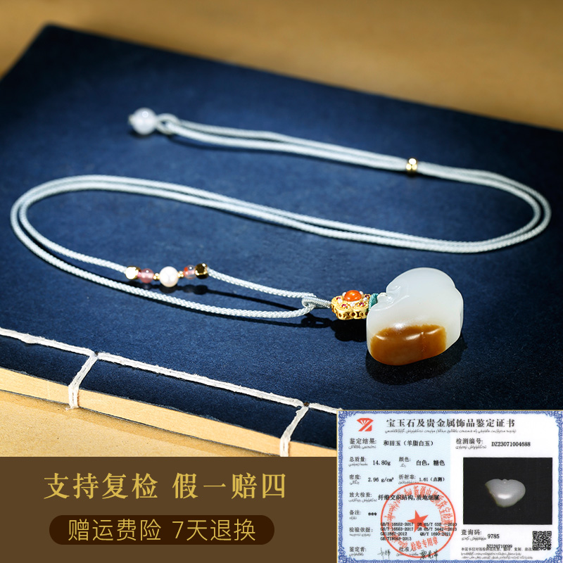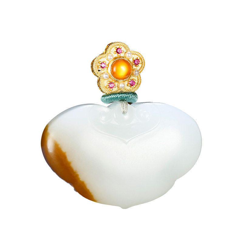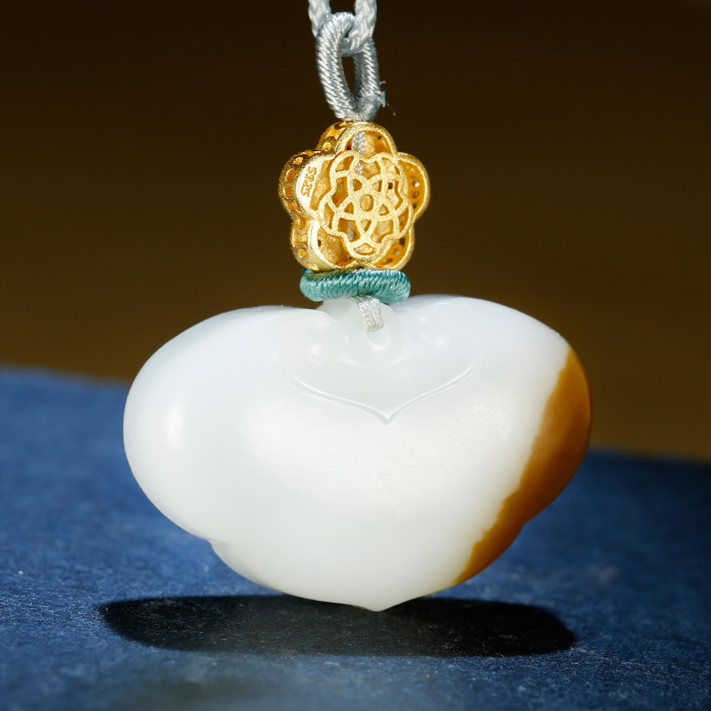 玉友和田玉如意锁吊坠男女款玉坠糖羊脂白玉吉祥如意玉佩玉石挂件