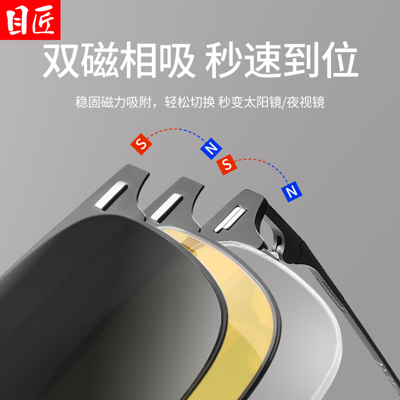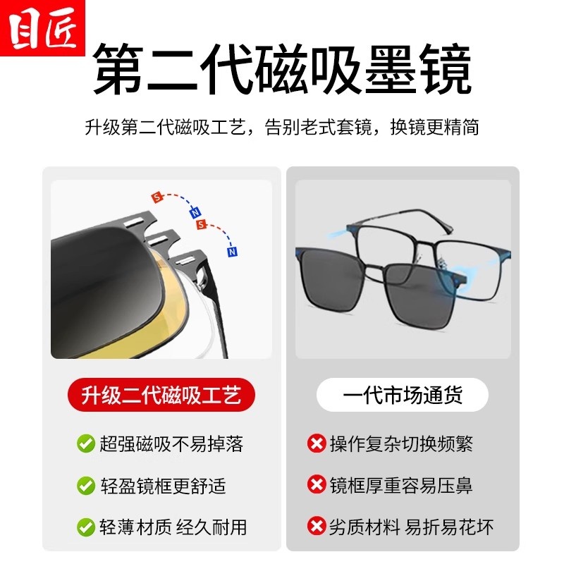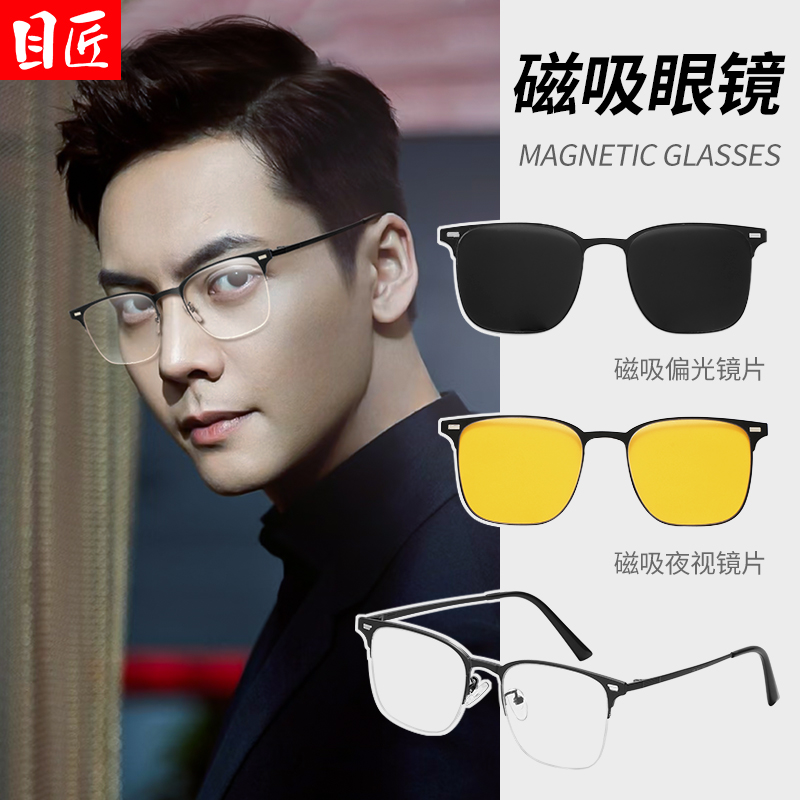 超轻磁吸式半框近视眼镜框男款可配度数三合一墨镜套镜男士太阳镜