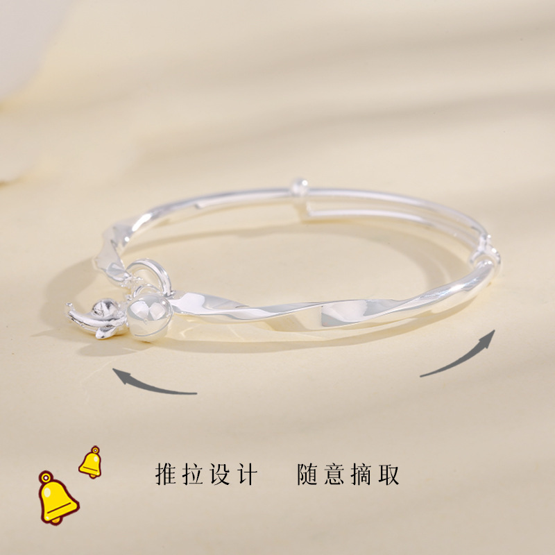 之恋镯子手环礼物送女友手镯实心铃铛银999海豚莫比乌斯足纯银