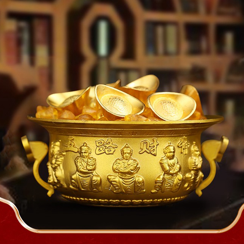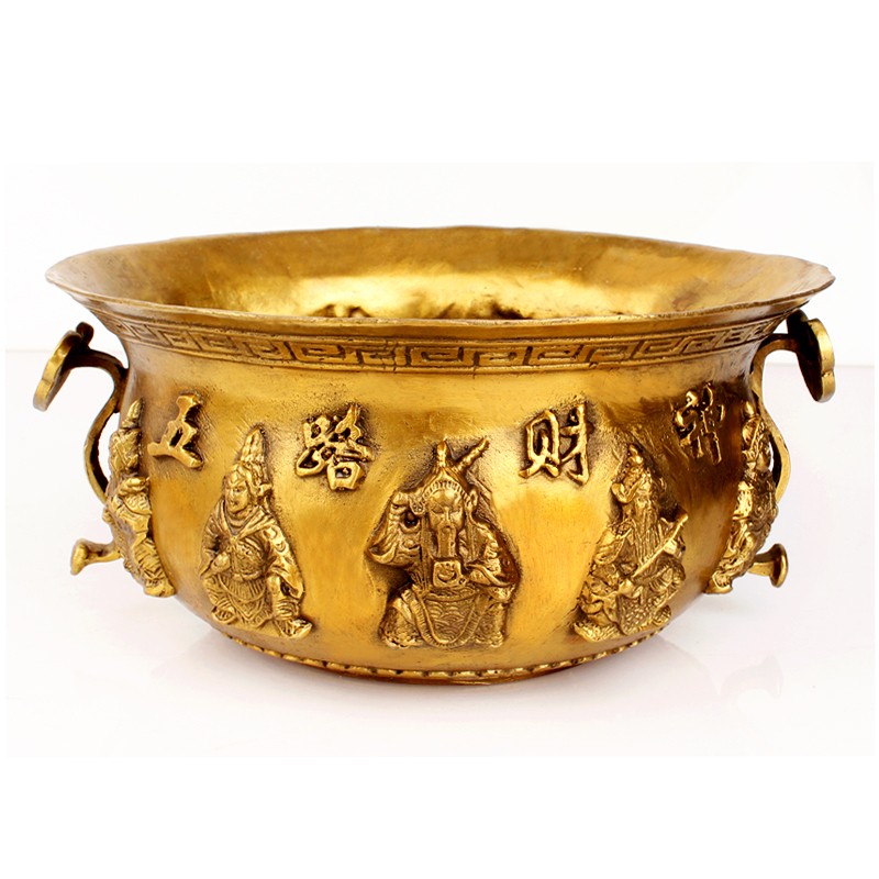 黄铜大号聚宝盆五路财神聚宝盆店铺家居客厅办公桌面工艺装饰礼品