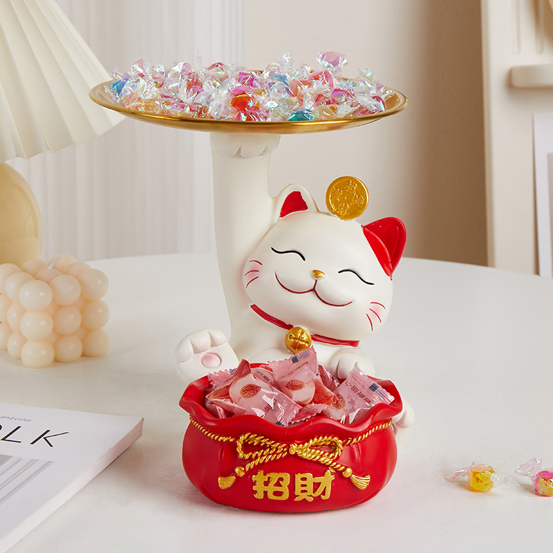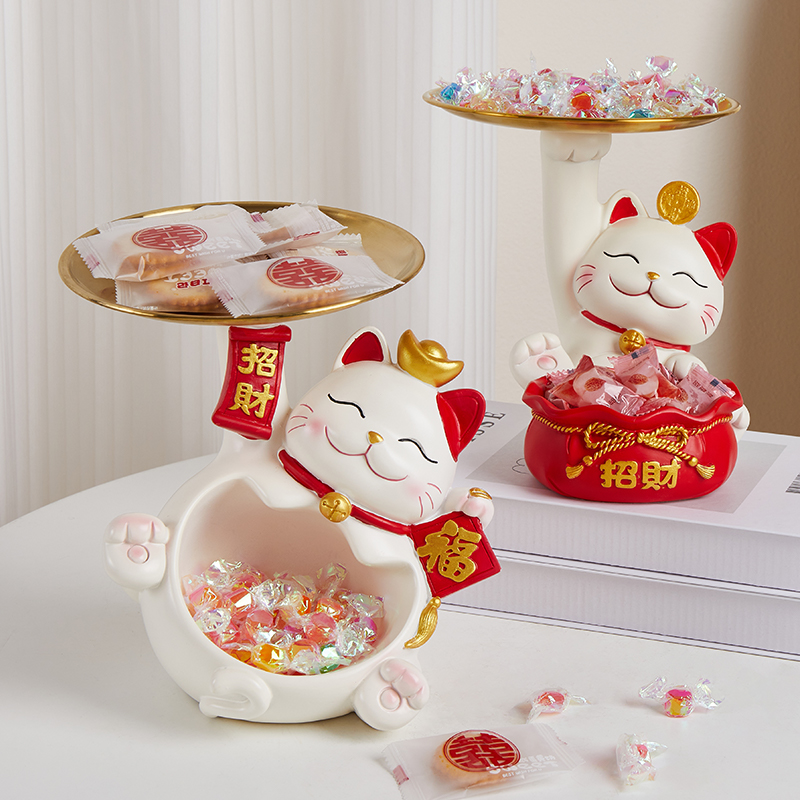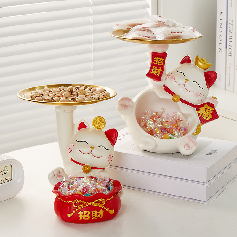 招财猫放糖果零食桌面托盘收纳摆件酒店前台接待家居水果盘置物架