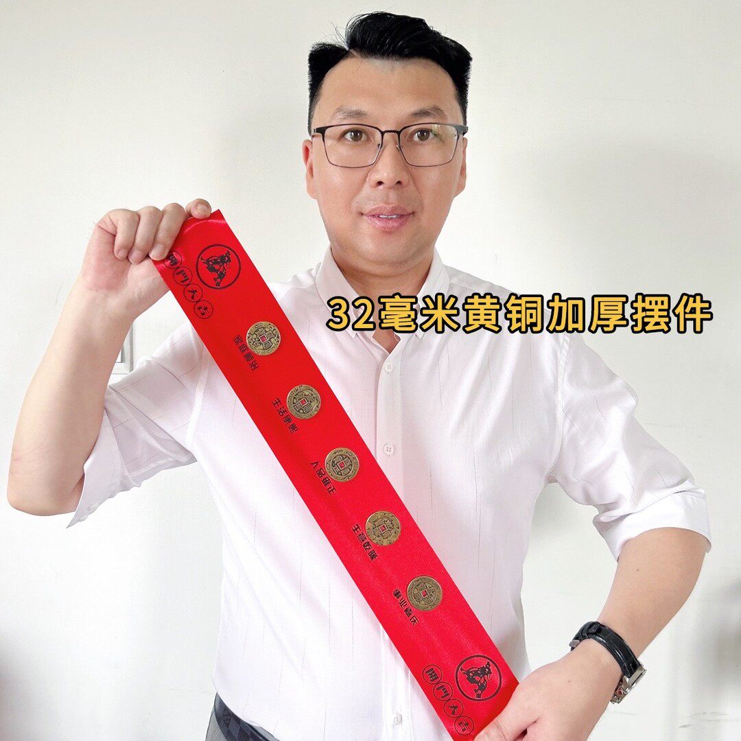 新房装修铺门槛石现代工艺品加厚黄铜铸造五帝红布过门石落地摆件