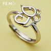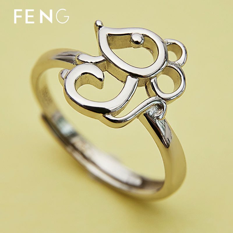 生肖鼠戒指女s925纯银本命年小老鼠宽版网红爆款开口银戒刻字
