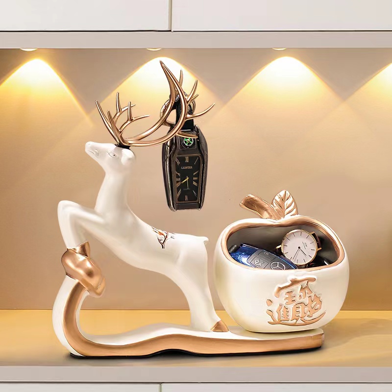 入户门口玄关放钥匙扣收纳摆件创意现代鞋柜鹿装饰品乔迁新居礼品