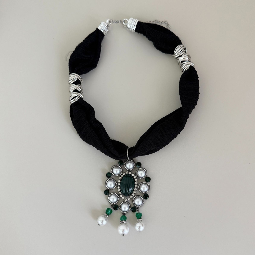 中古复古翠绿色宝石流苏吊坠项链女轻奢高级感个性毛衣链锁骨链潮