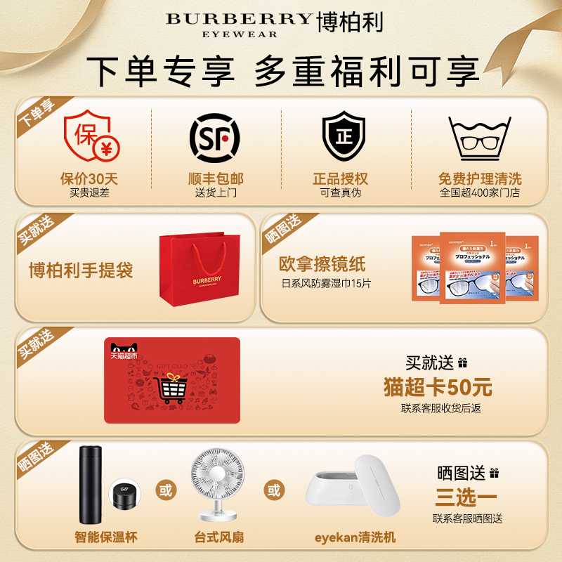 Burberry博柏利眼镜框女款黑框潮近视眼镜架度数可配男款OBE2376