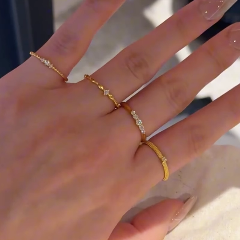 微镶细闪戒指女小众设计轻奢高级感食指戒2025新款金色叠戴指环女