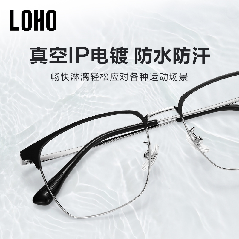 LOHO新品超轻钛架眉框近视可配度数女半框眼镜男款黑框眼睛镜框架
