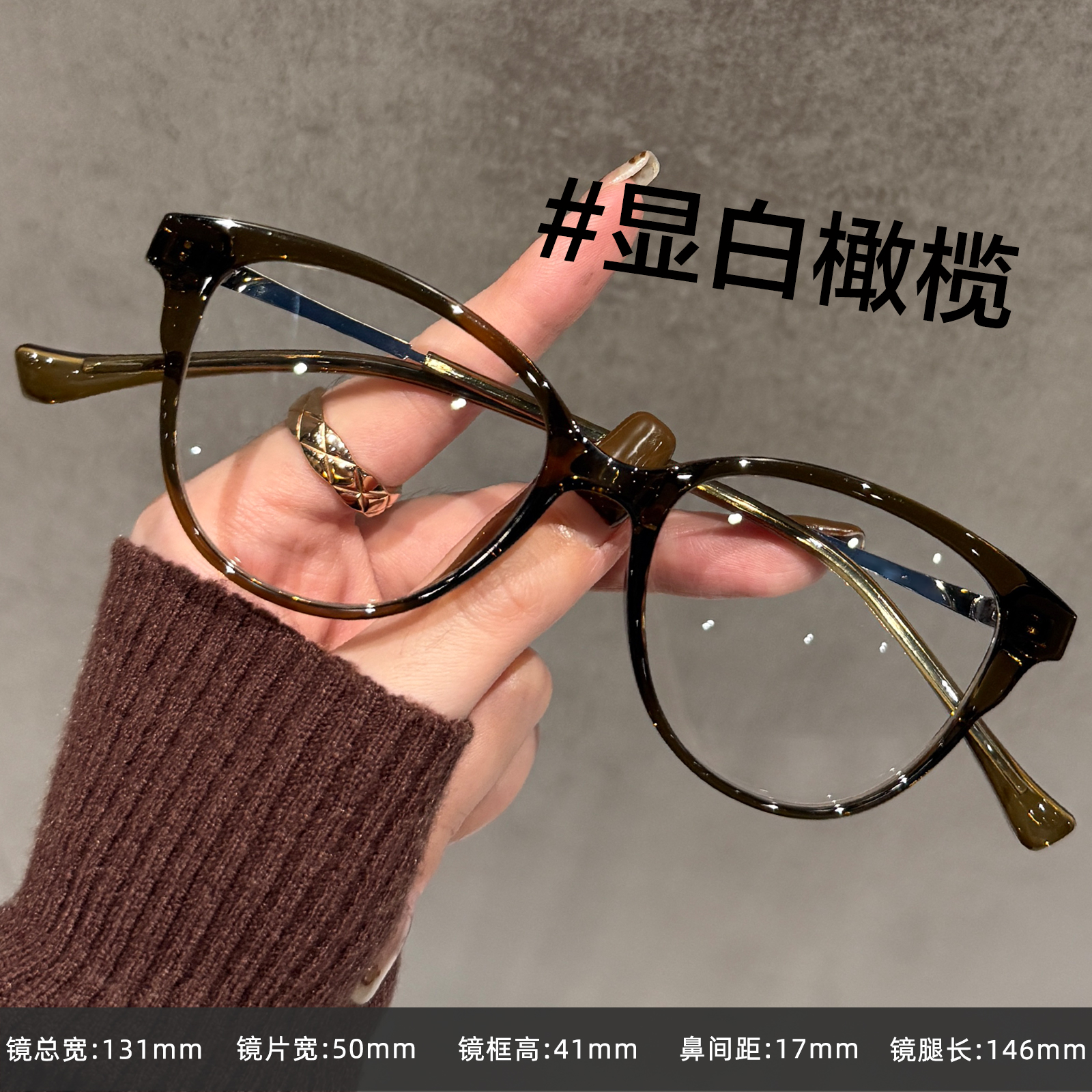 超轻TR90猫眼近视眼镜女专业可配度数冷茶色素颜显白防蓝光眼睛框