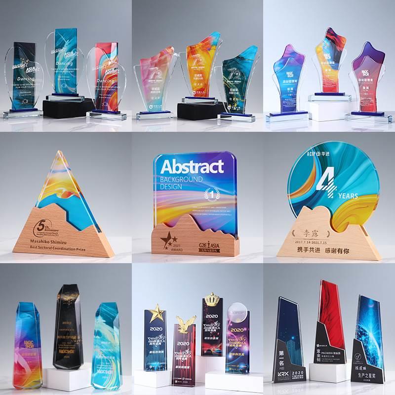 新款水晶奖制刻字大拇指年会颁奖彩色五角星树脂金属奖牌奖座奖杯