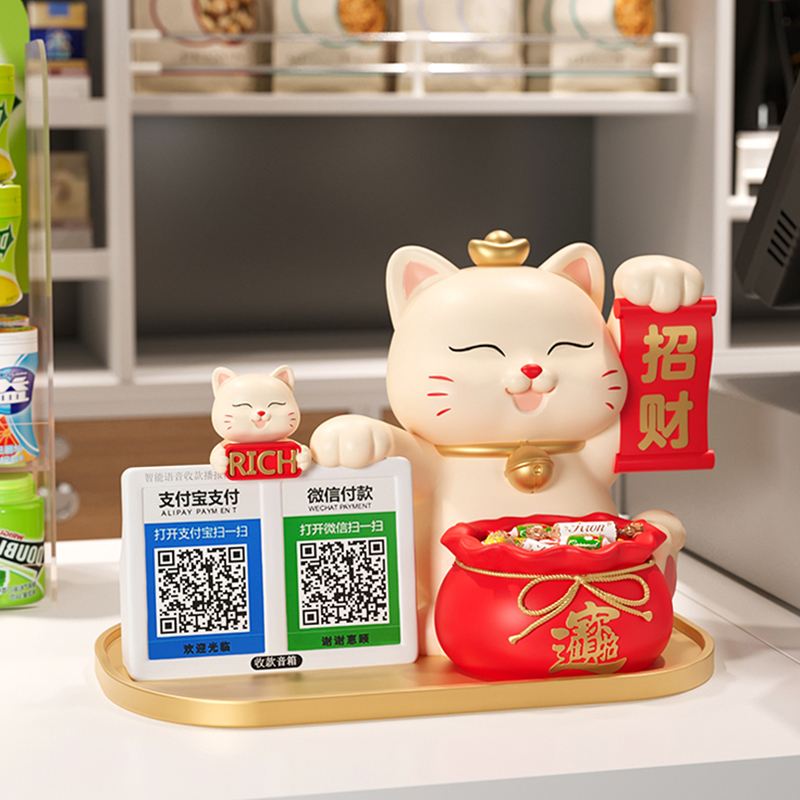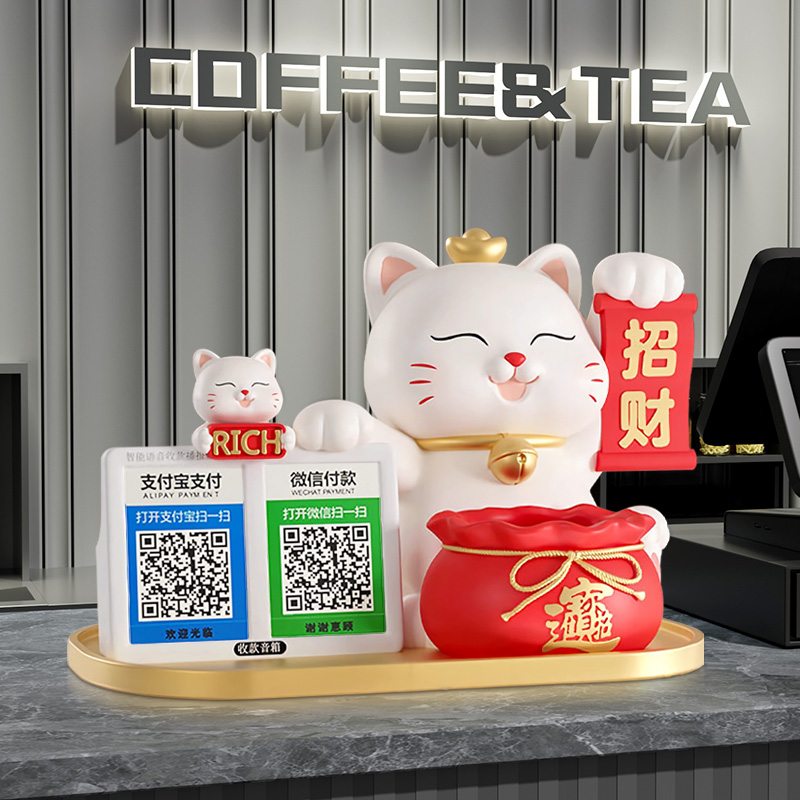 新店开业大吉店铺前台收银招财猫摆件二维码收钱发财猫装饰品礼物