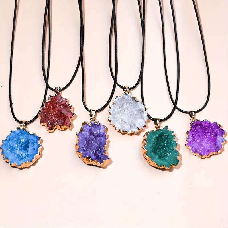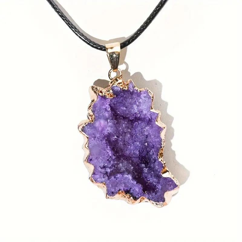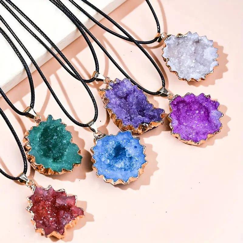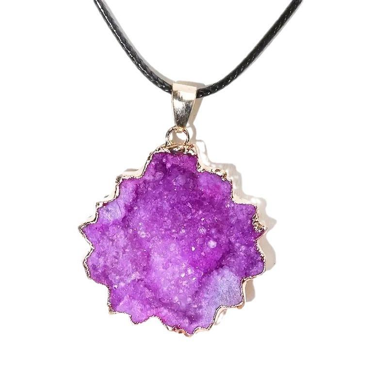 天然水晶洞太阳花朵切片吊坠玛瑙鎏边电镀炫彩不规则毛衣项链跨境