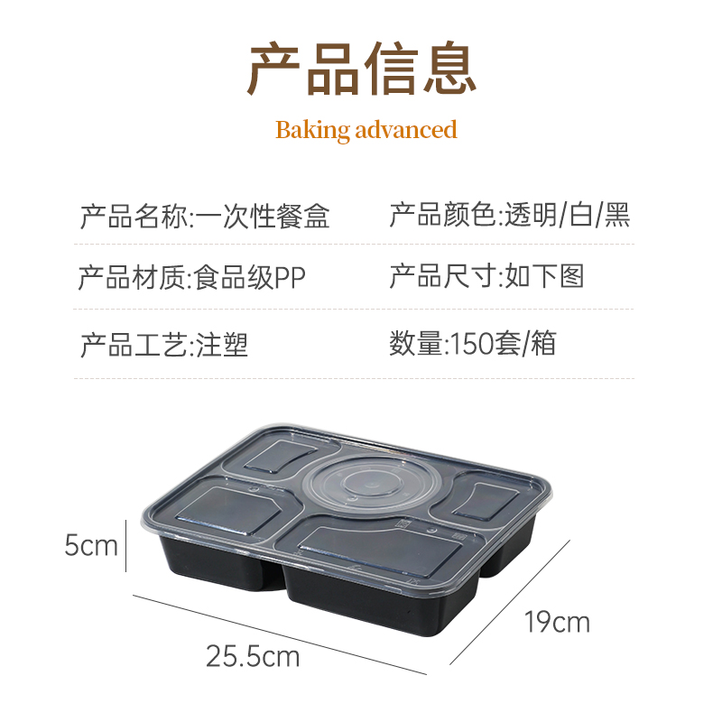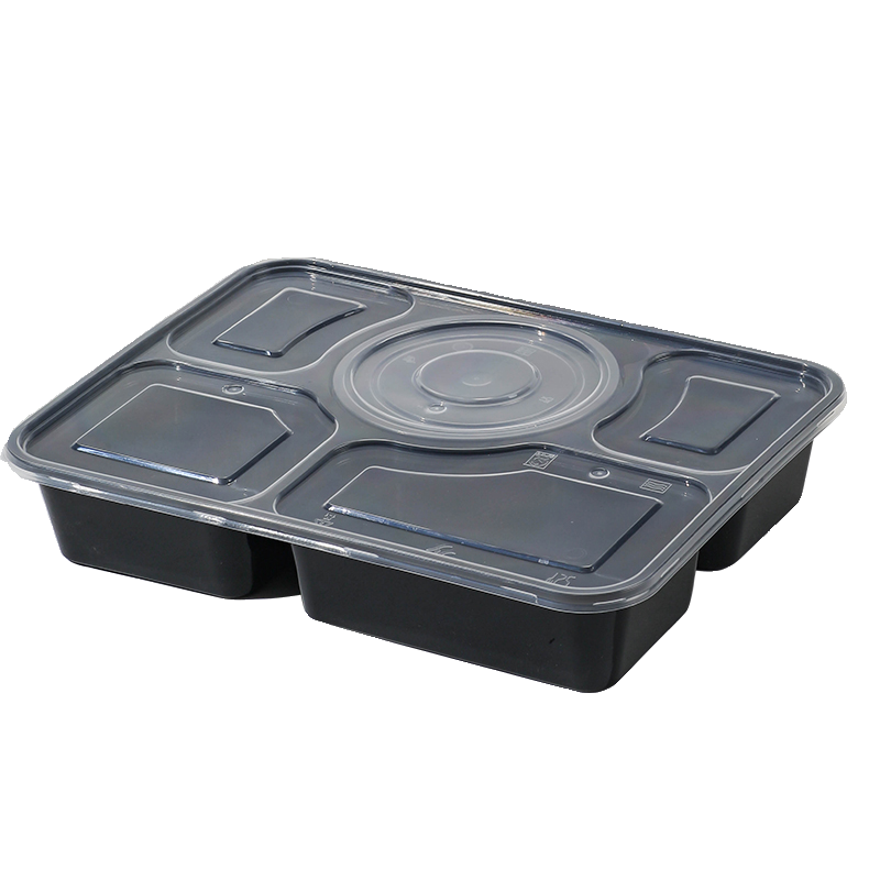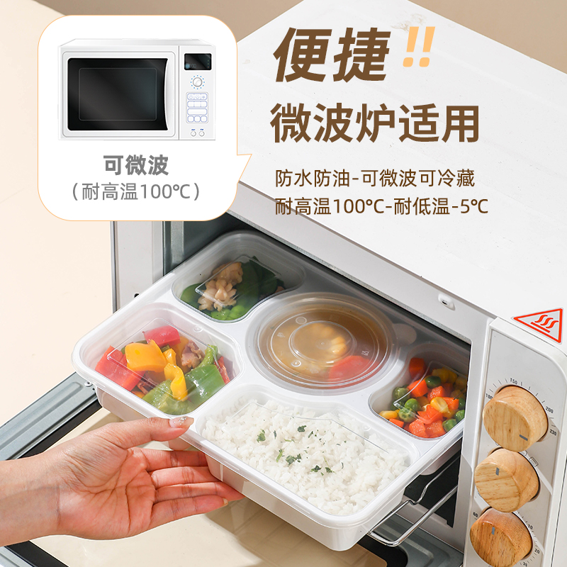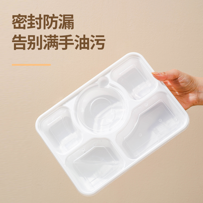 高档长方形五格一次性餐盒外卖快餐打包盒轻食餐盒便当盒加厚带盖