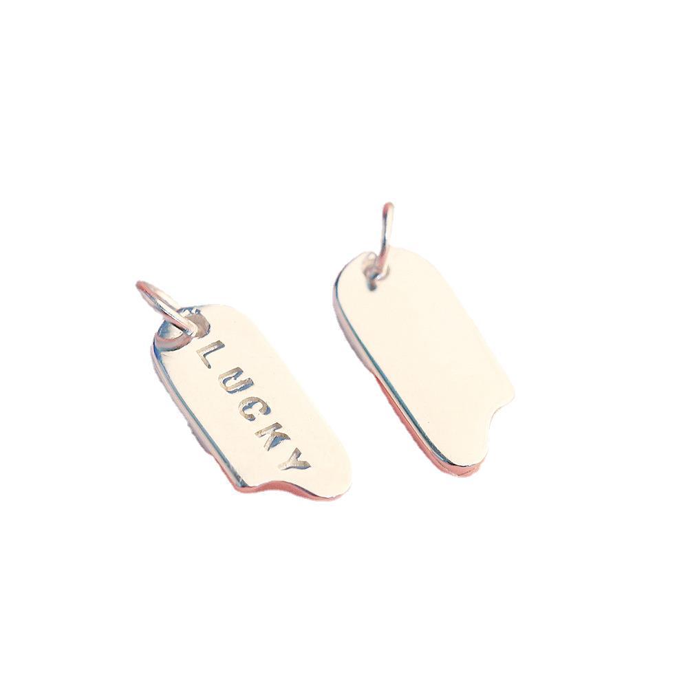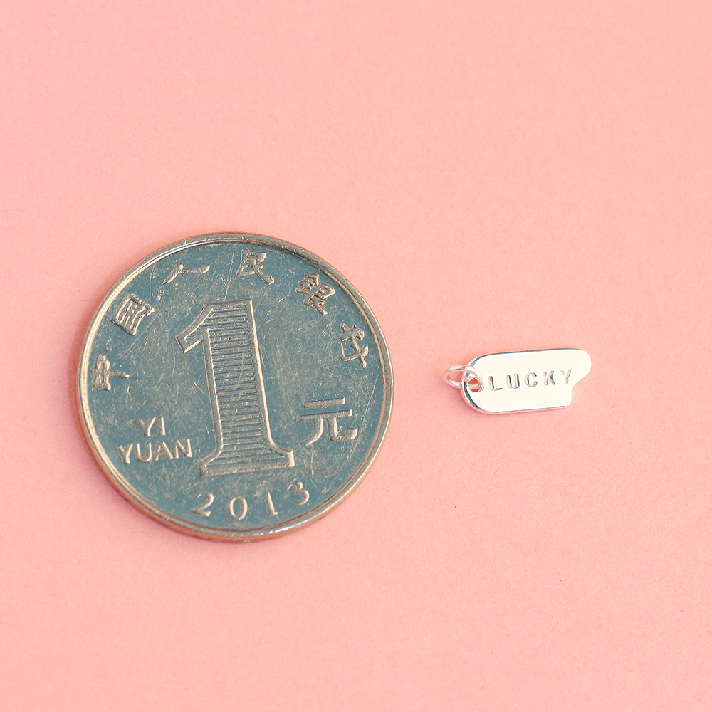 S925纯银光面不规则幸运字牌LUCKY英文吊坠简约个性手链水晶挂件