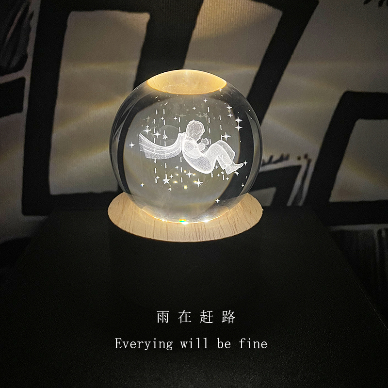 创意小王子宇航员3D水晶球小夜灯治愈桌面摆件房间装饰品生日礼物